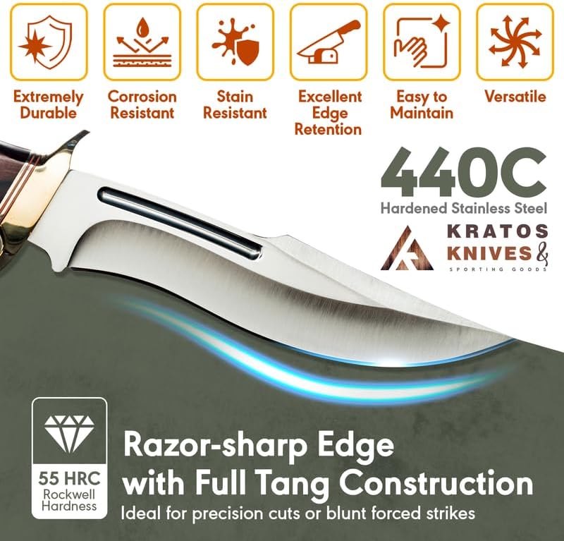 Hardened 440C stainless steel blade for superior edge retention