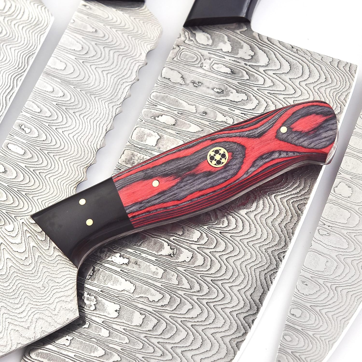 The Damascus Knife Set provides exceptional cutting precision, durability, and control for all culinary tasks. Its rust-proof blades maintain sharpness longer, reducing effort in chopping, slicing, dicing, and mincing. Perfect for home kitchens, professional chefs, and outdoor cooking enthusiasts.