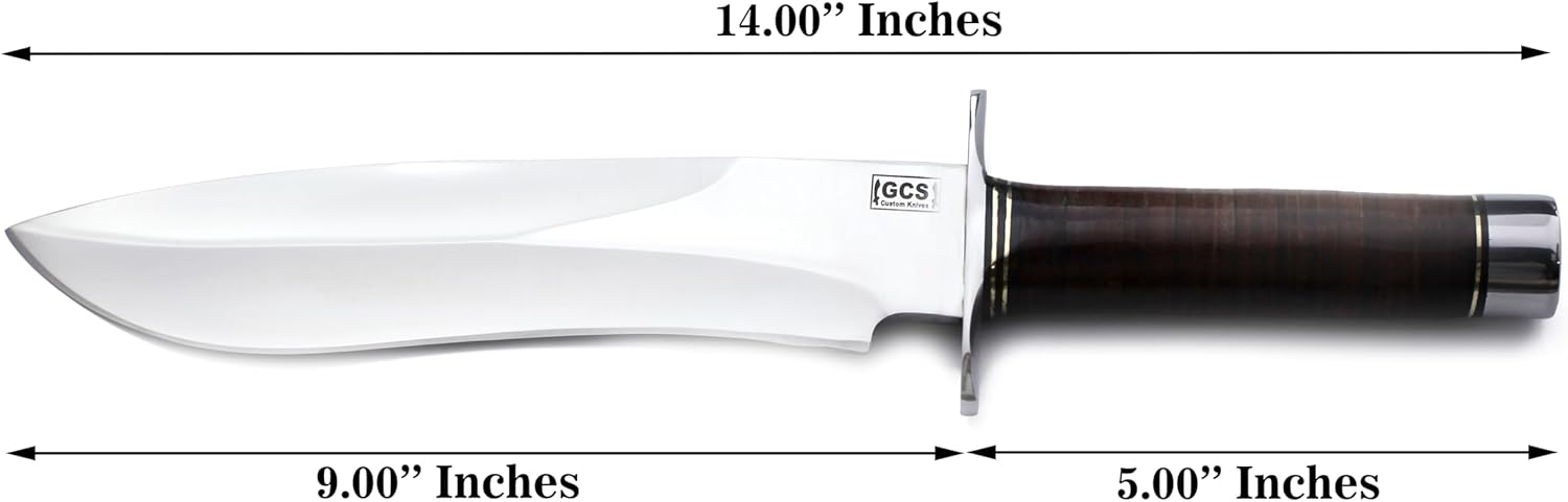 GCS D2 Steel Sasquatch Bowie Knife with Leather Handle Sheath mega blades
