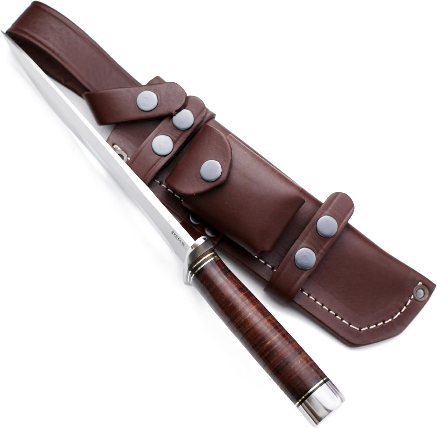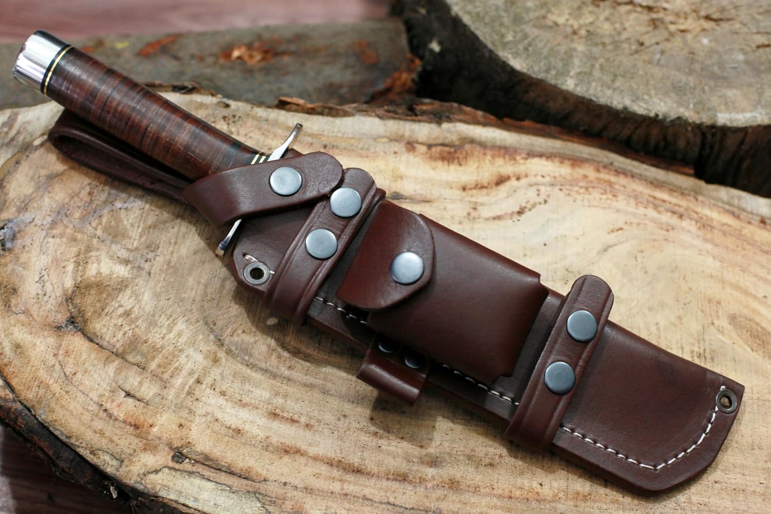 included components: Cow Hide Leather Sheath, Sharpening Stone