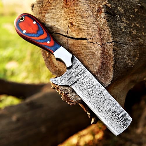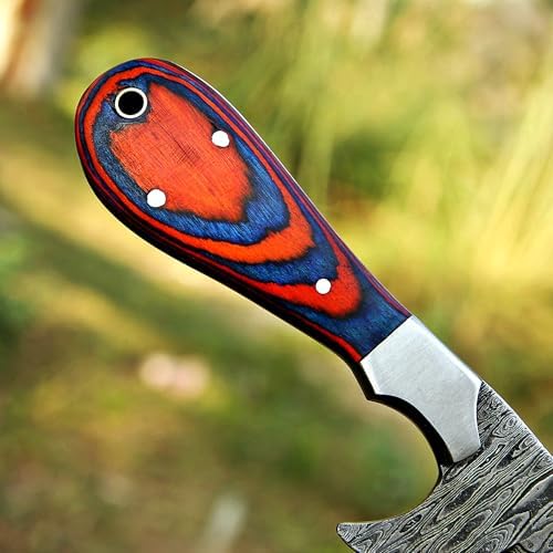 This knife combines precision cutting, robust durability, and ergonomic comfort. The Damascus steel blade excels at slicing, skinning, and general outdoor tasks, while the Pakka wood handle ensures a secure grip for extended use. Ideal for hunting, camping, bushcraft, and EDC enthusiasts seeking a reliable knife.
