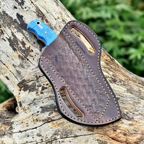 Includes hand-stitched full-grain pancake leather sheath for safe carry