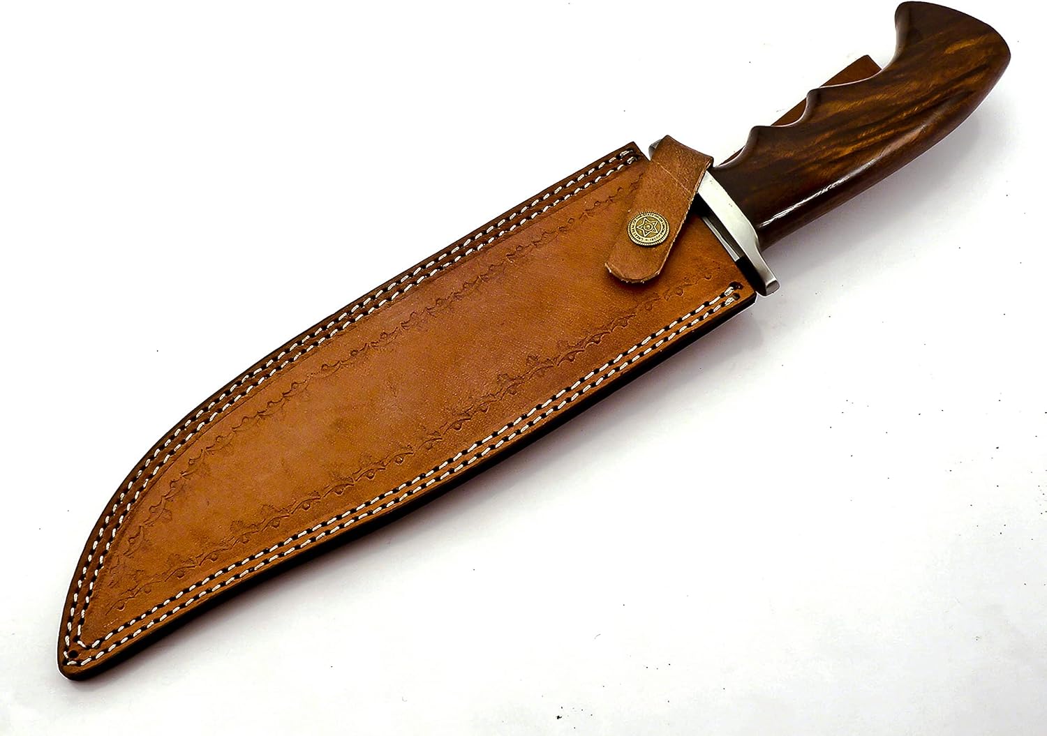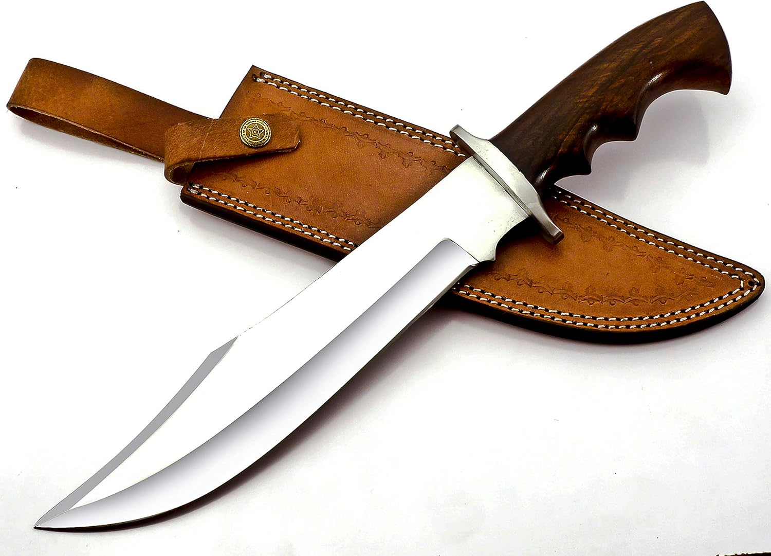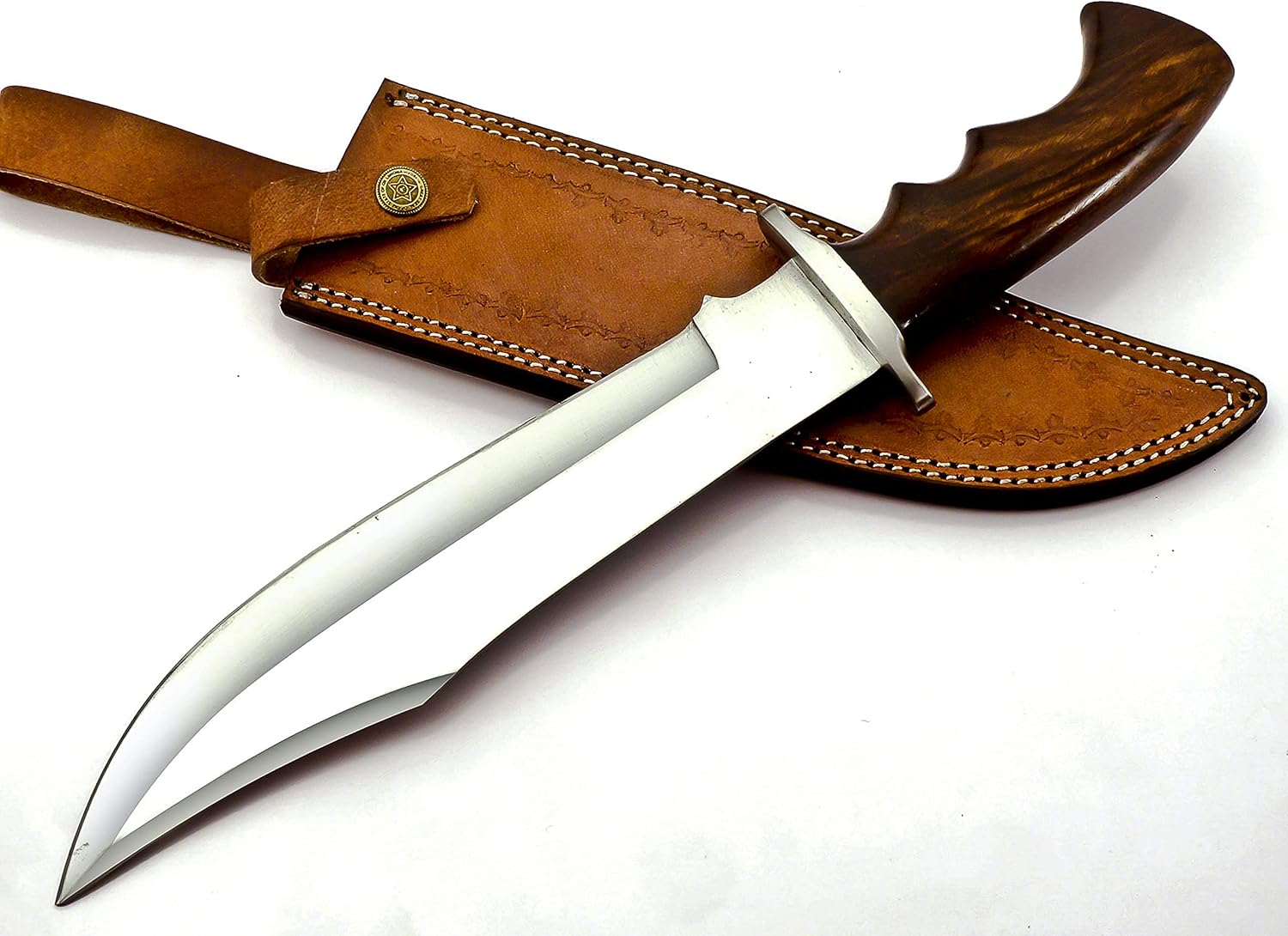The Handmade Bowie Knife features a 15-inch 440C stainless steel blade with a Rosewood handle for a comfortable, ergonomic grip. Comes with a premium leather sheath for safe carrying. Ideal for hunting, camping, outdoor adventures, or everyday tasks, this multipurpose knife is durable, sharp, and reliable.