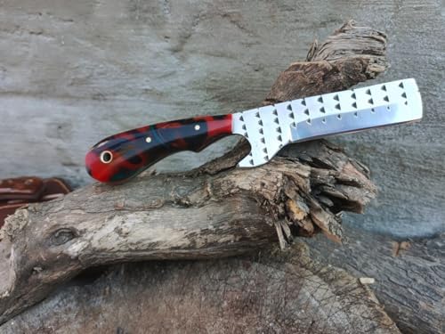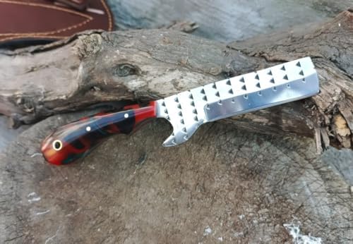 The Handmade Bull Cutter Hunting Knife combines superior craftsmanship with practical outdoor functionality. Featuring a razor-sharp farrier rasp steel blade and ergonomic resin handle, this fixed blade knife is designed for hunting, bushcrafting, camping, hiking, and self-defense. Complete with a premium leather sheath, it ensures safe carry and quick access in any outdoor scenario.