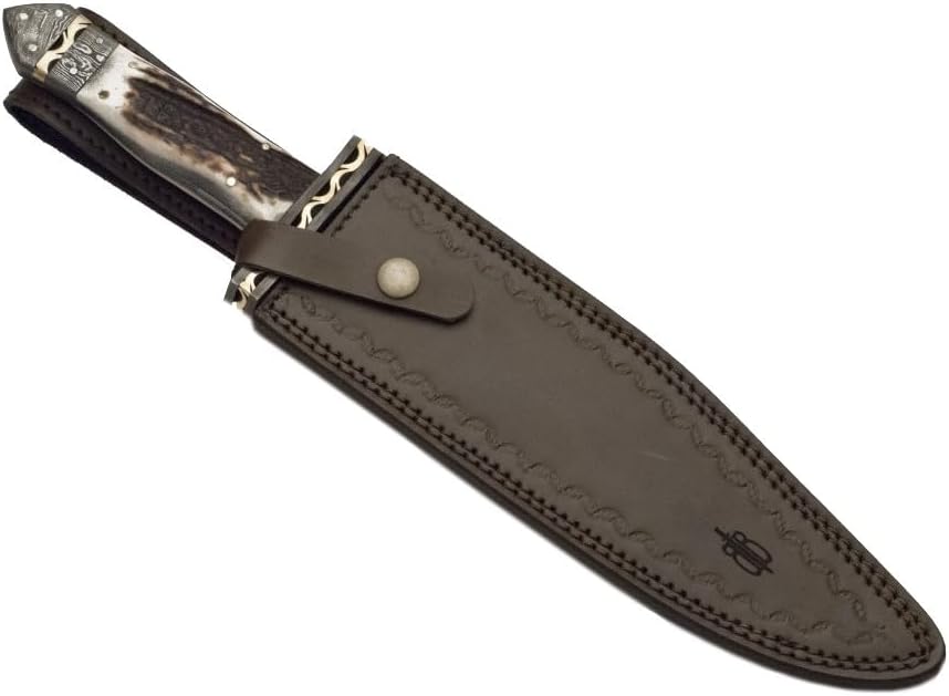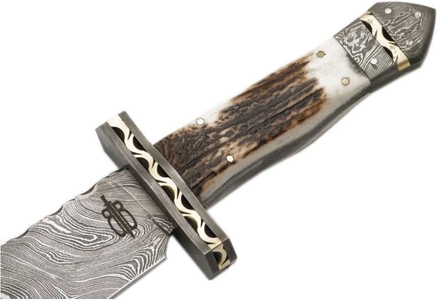 Handmade Damascus Bowie Knife Big Game Hunter with Stag Handle mega blades