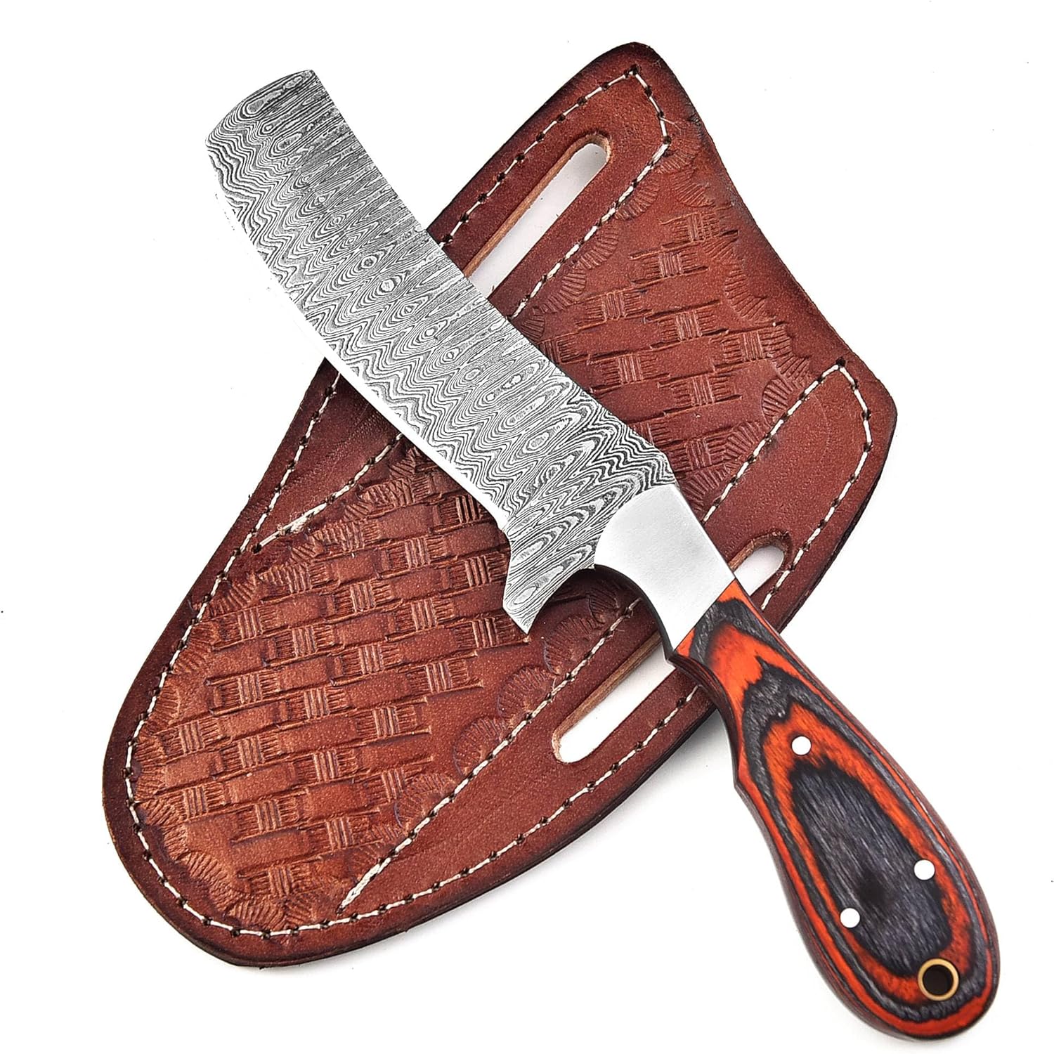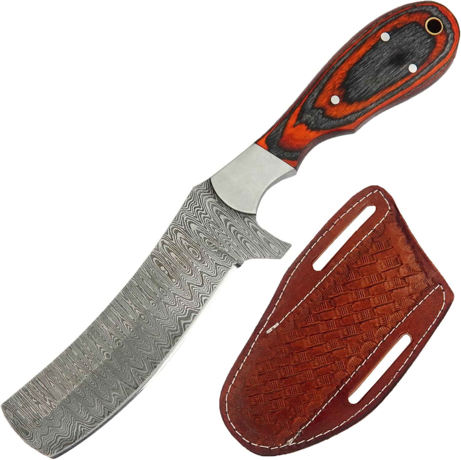 The Handmade Damascus Bull Cutter Knife by BNAZIND is a versatile, hand-forged knife built for durability, precision, and outdoor performance. With a full tang construction and layered Damascus steel, this fixed blade knife is perfect for hunting, bushcraft, camping, and everyday carry tasks.