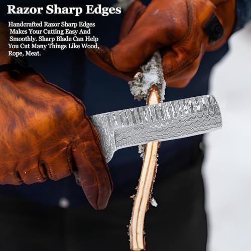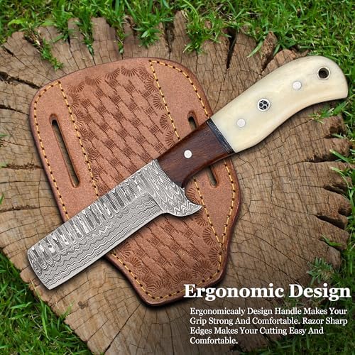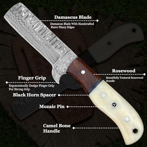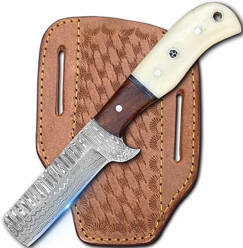 Handmade Damascus Cowboy Knife with Leather Sheath 8” | Mega Blades