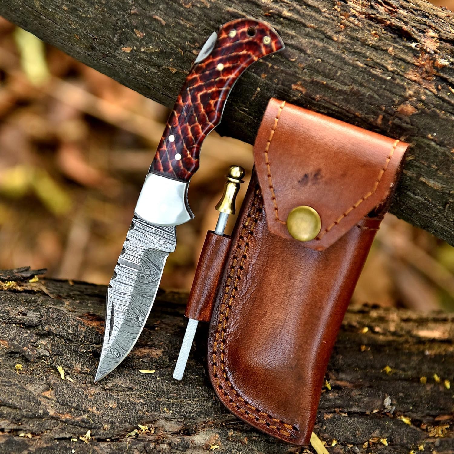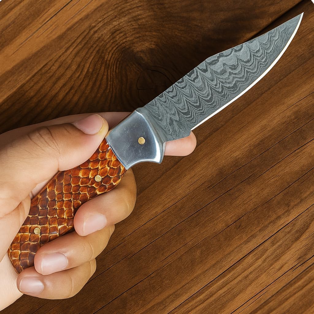 Expertly hand-forged 🔥 from high-quality Damascus steel, this handmade Damascus folding knife features a striking wavy pattern 🎨 and exceptional edge retention. Built for durability and long-lasting sharpness, each blade is both a reliable tool and a collectible piece of craftsmanship ✨.