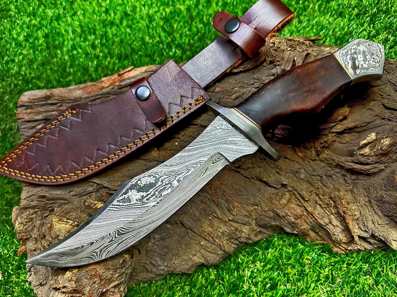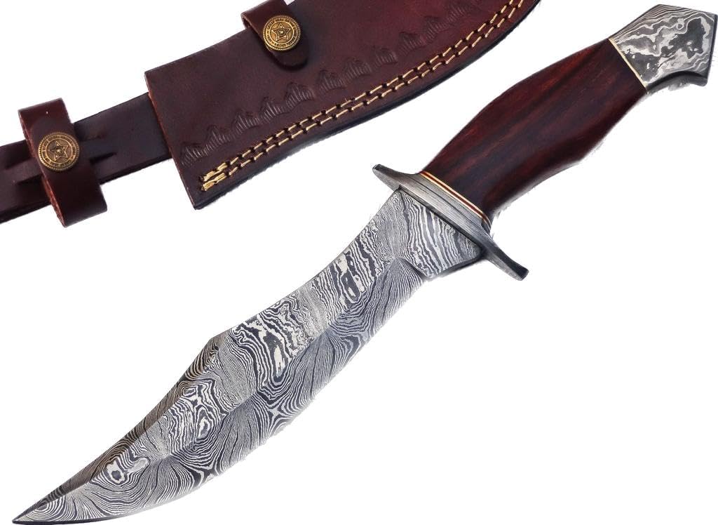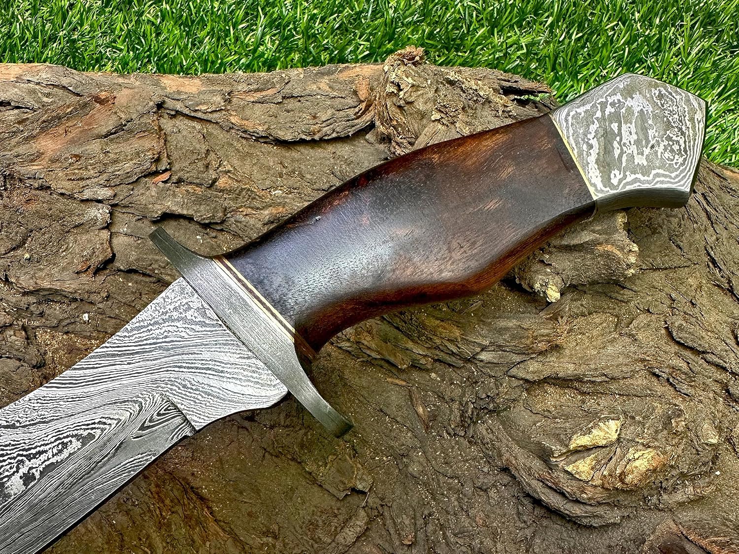 Handmade Damascus Hunting Knife 13″ with Rosewood Handle mega blades