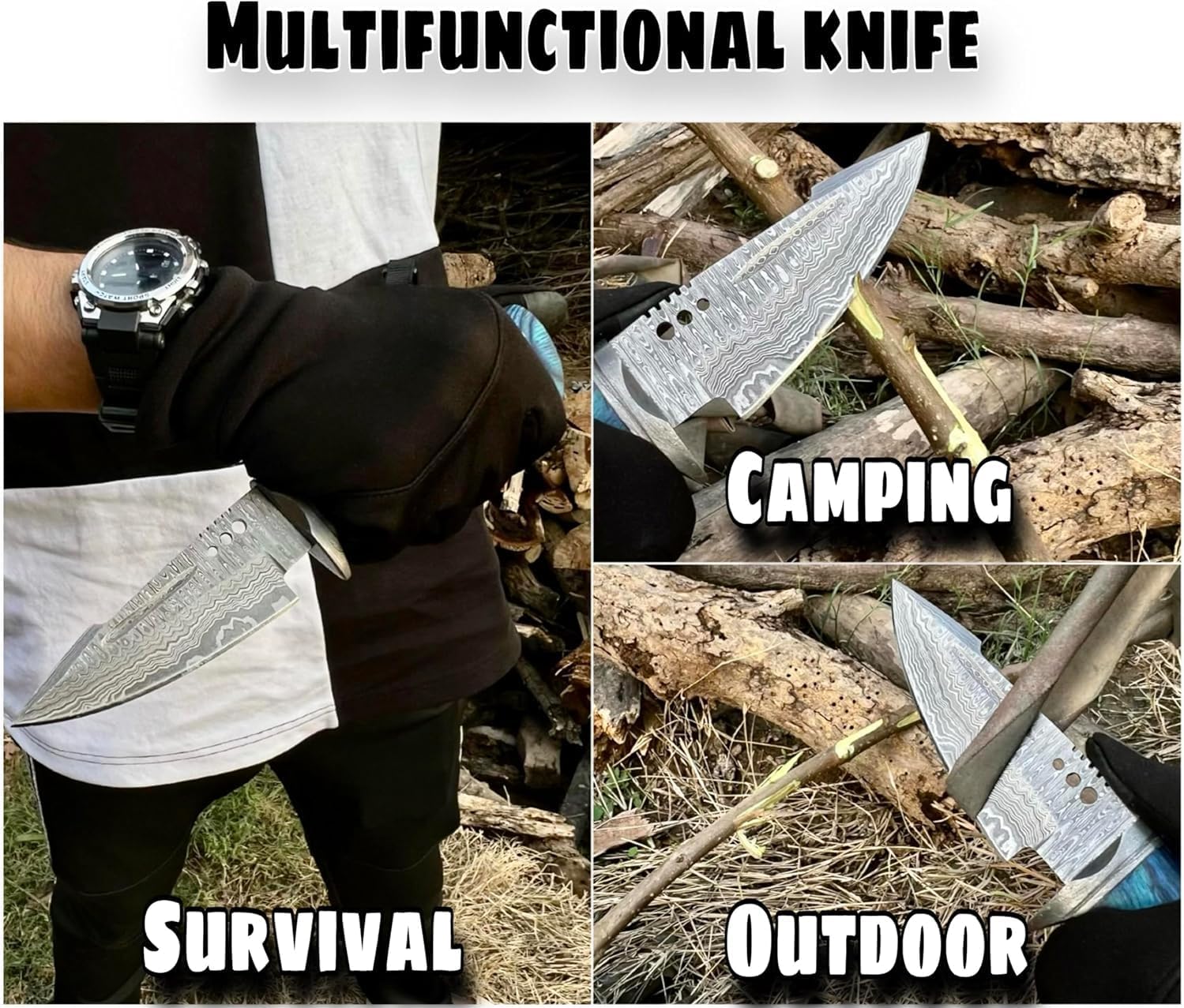 The Handmade Damascus Hunting Knife is a precision-crafted outdoor tool designed for hunters, campers, and survival enthusiasts. Forged from Damascus steel with 288 layers, this knife combines strength, sharpness, and aesthetic appeal, making it a reliable companion for bushcraft, skinning, fishing, and camping.