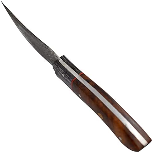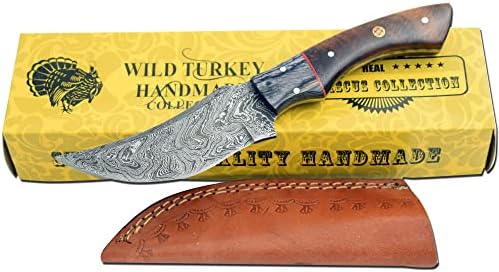 Elevate your outdoor adventures with the Wild Turkey Handmade Damascus Hunting Knife. This expertly crafted knife combines traditional artistry with modern functionality, making it ideal for hunting, camping, fishing, and bushcraft. Its full tang design ensures exceptional strength, while the 4-inch Damascus steel blade offers unmatched sharpness and precision.