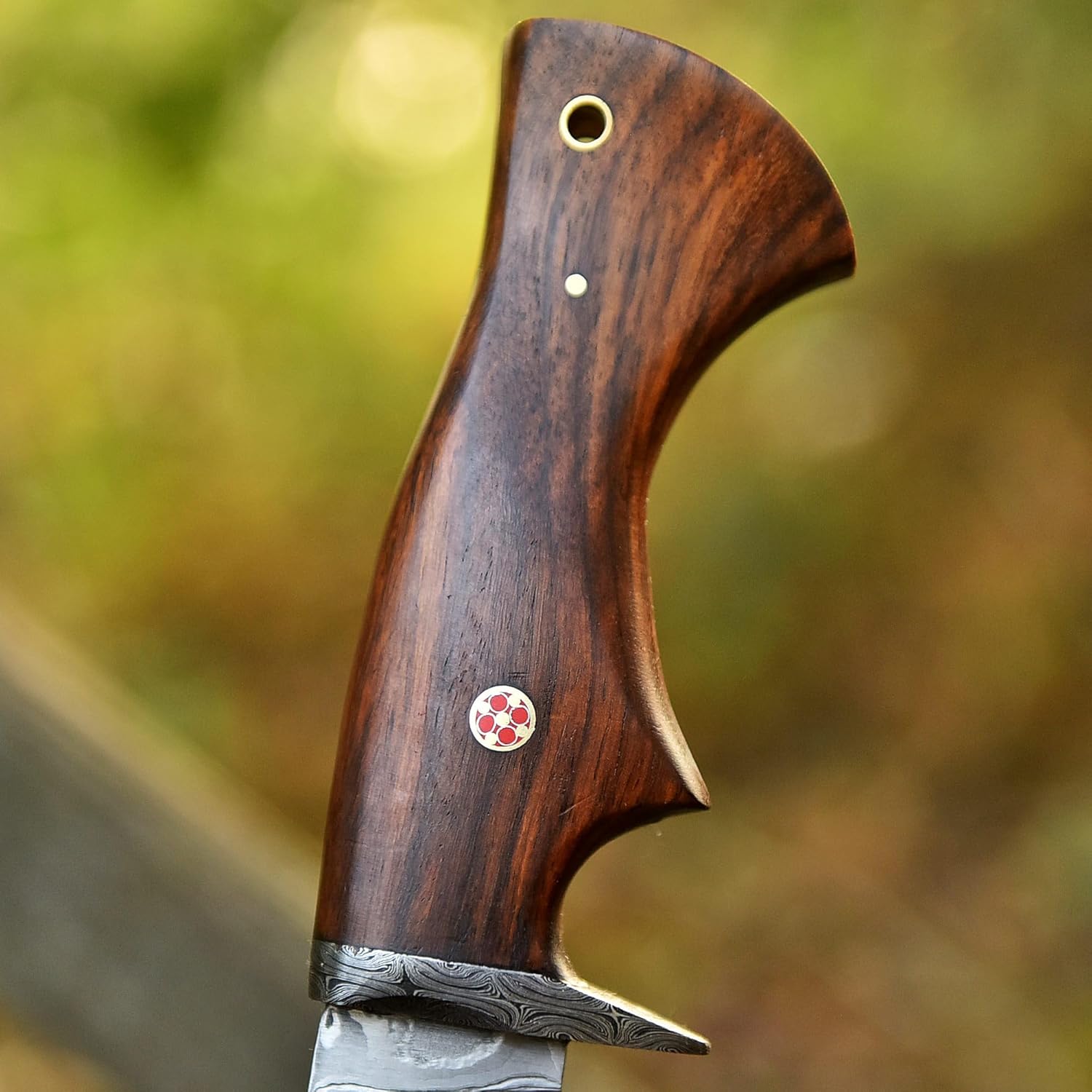Handmade Damascus Hunting Knife with Walnut Wood Handle & Sheath mega blades