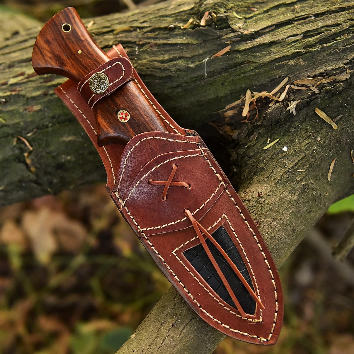 The Damascus Hunting Knife by FAIQENTERPRICE is a handcrafted outdoor knife designed for hunters, campers, and bushcraft enthusiasts. Made with 288 layers of folded Damascus steel, this knife combines strength, durability, and aesthetic appeal. Its ergonomic walnut wood handle and full tang construction ensure comfort, balance, and reliability in all outdoor activities.