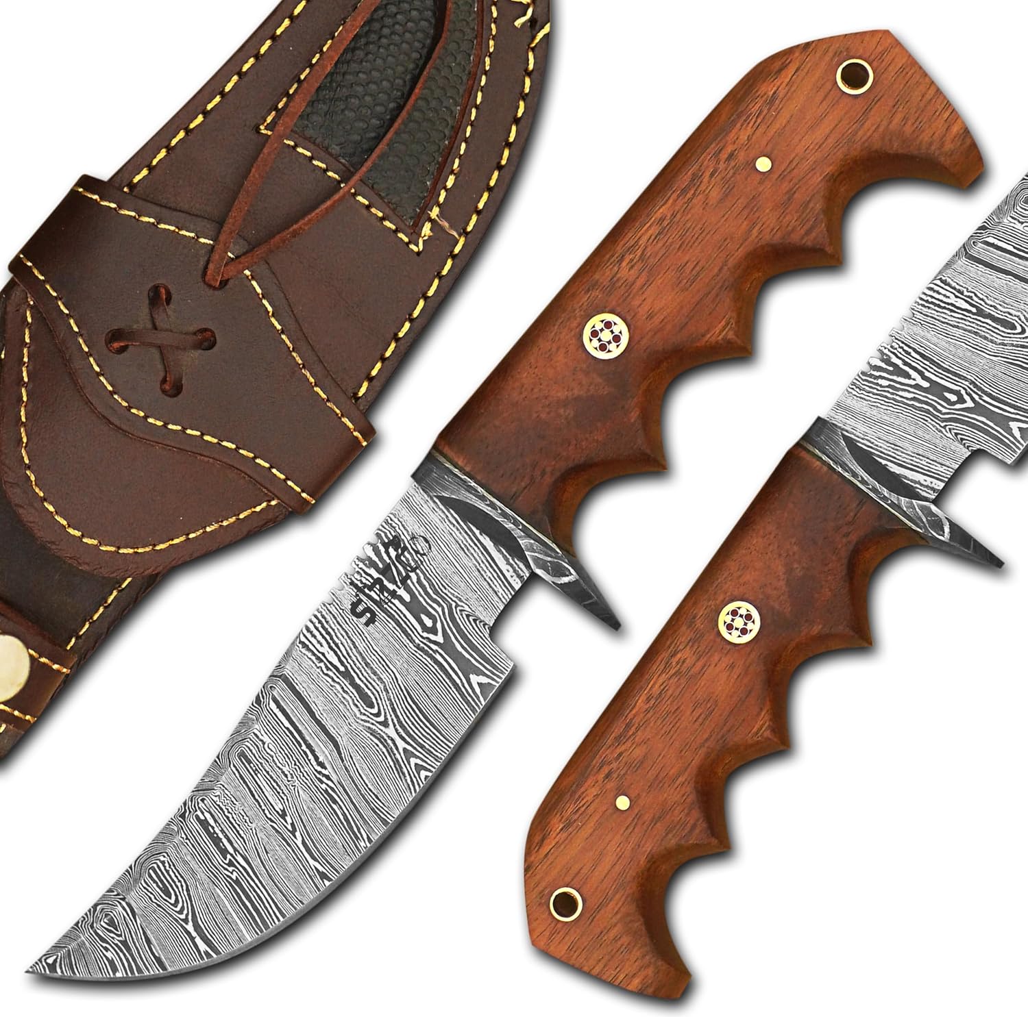 Handmade Damascus Hunting Knife with Wooden Handle and Sheath mega blades