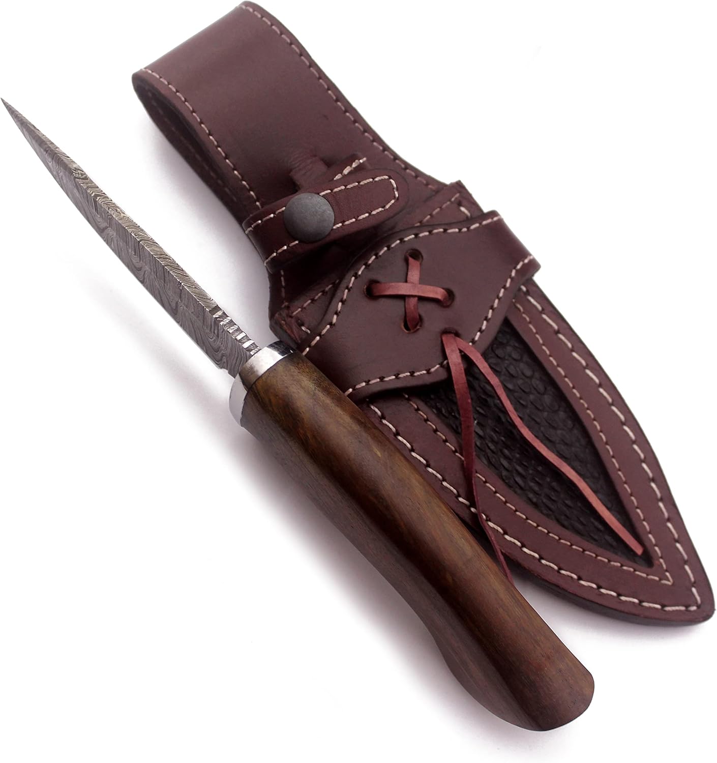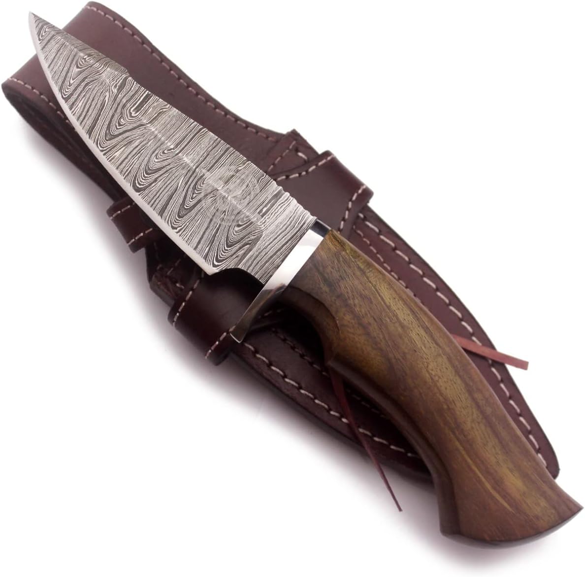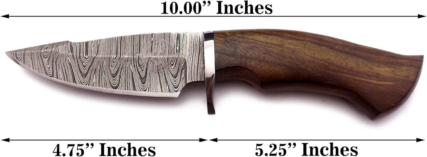 The Damascus Knife features a 10″ full tang blade with a walnut wood handle for an ergonomic, non-slip grip. Expertly forged Damascus steel ensures durability, sharpness, and rust resistance. Includes a premium leather sheath. Ideal for hunting, camping, survival, bushcraft, and outdoor adventures.