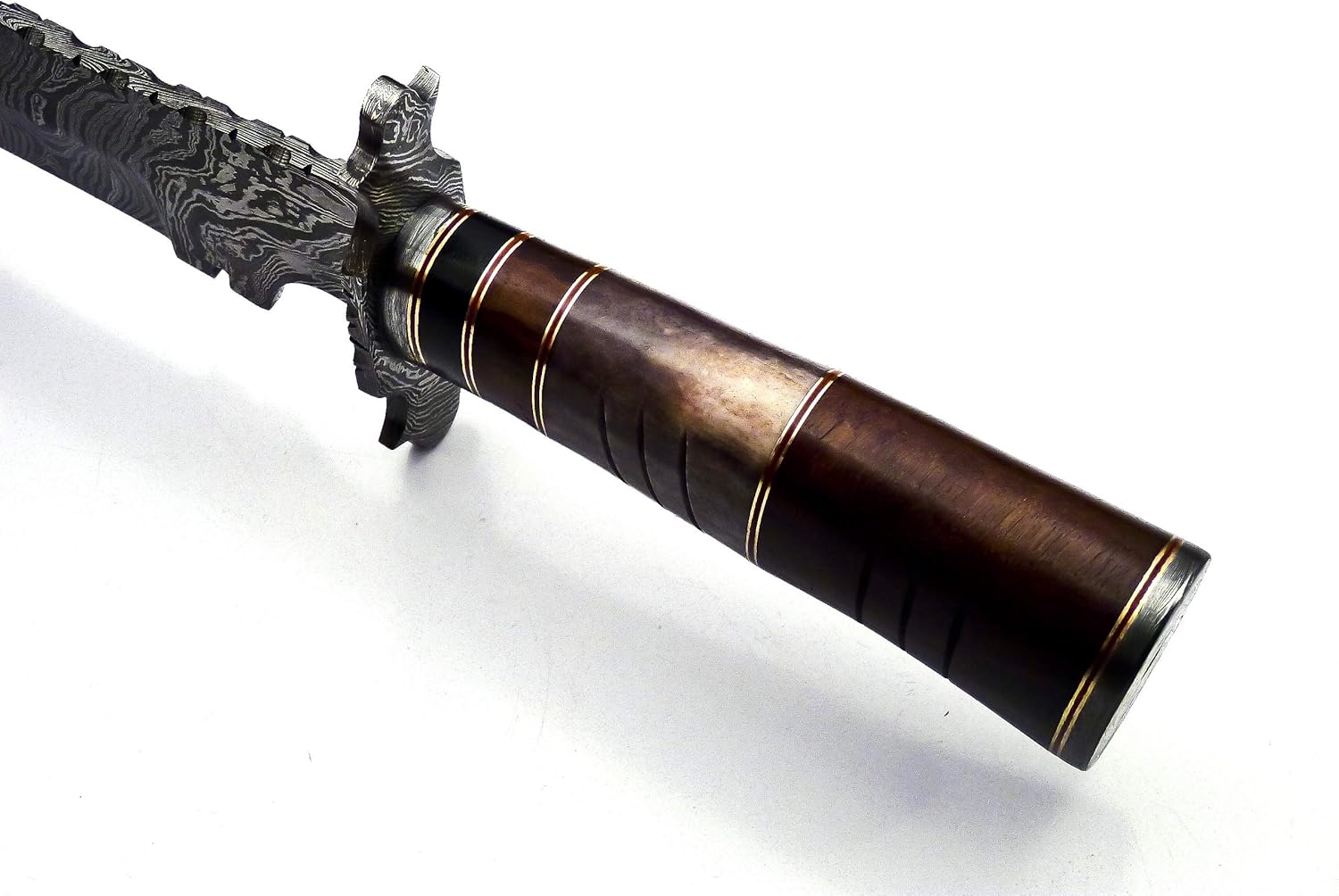 Handmade Damascus Knife with 15-inch full tang fixed blade