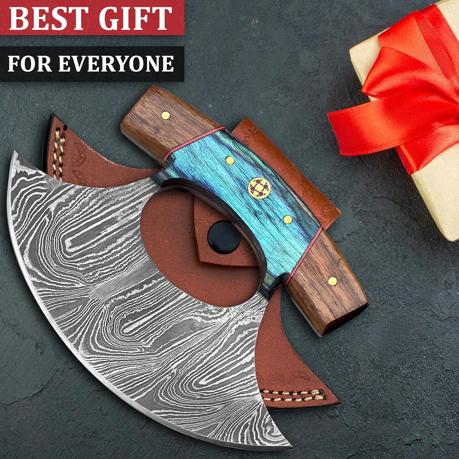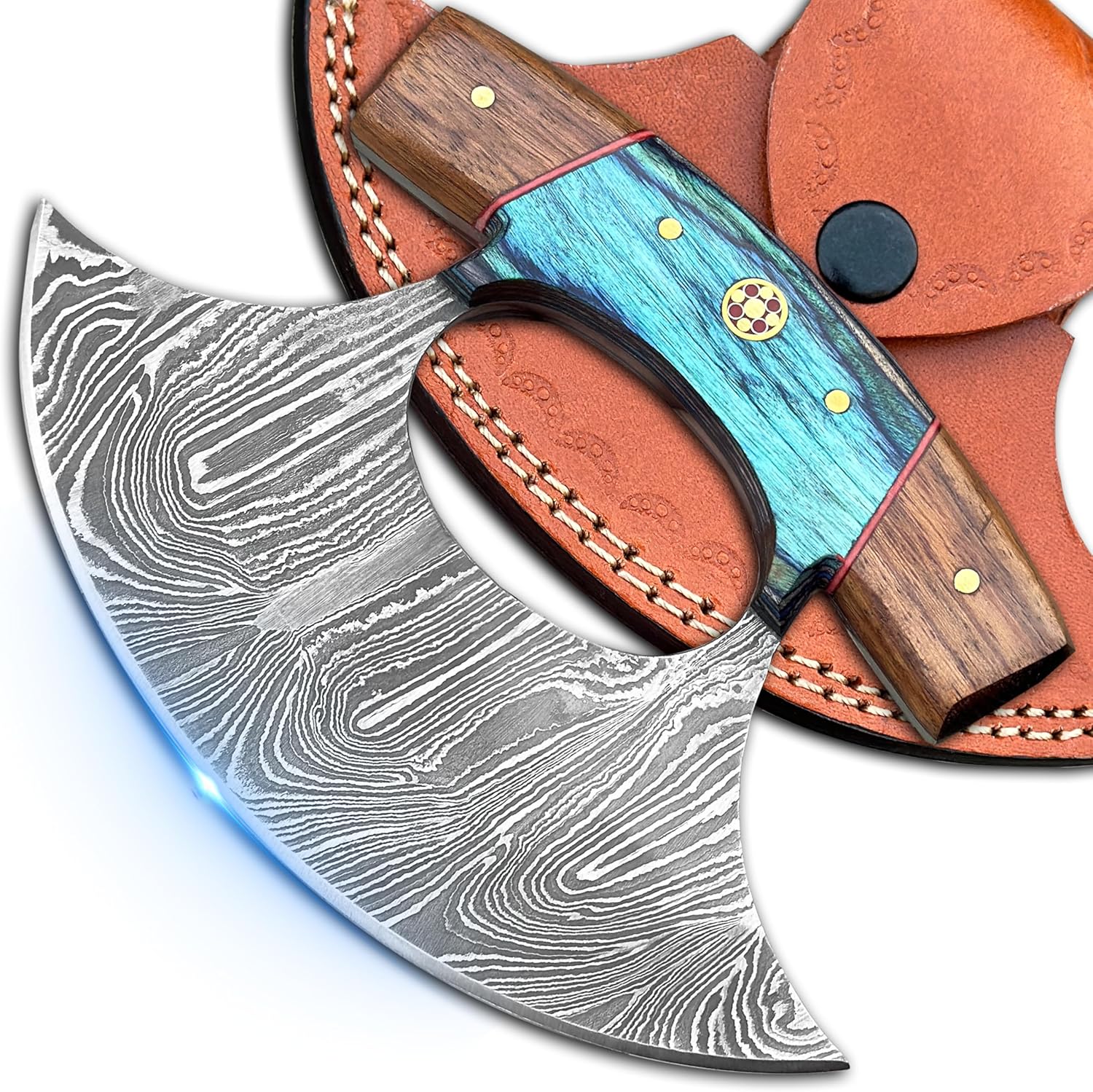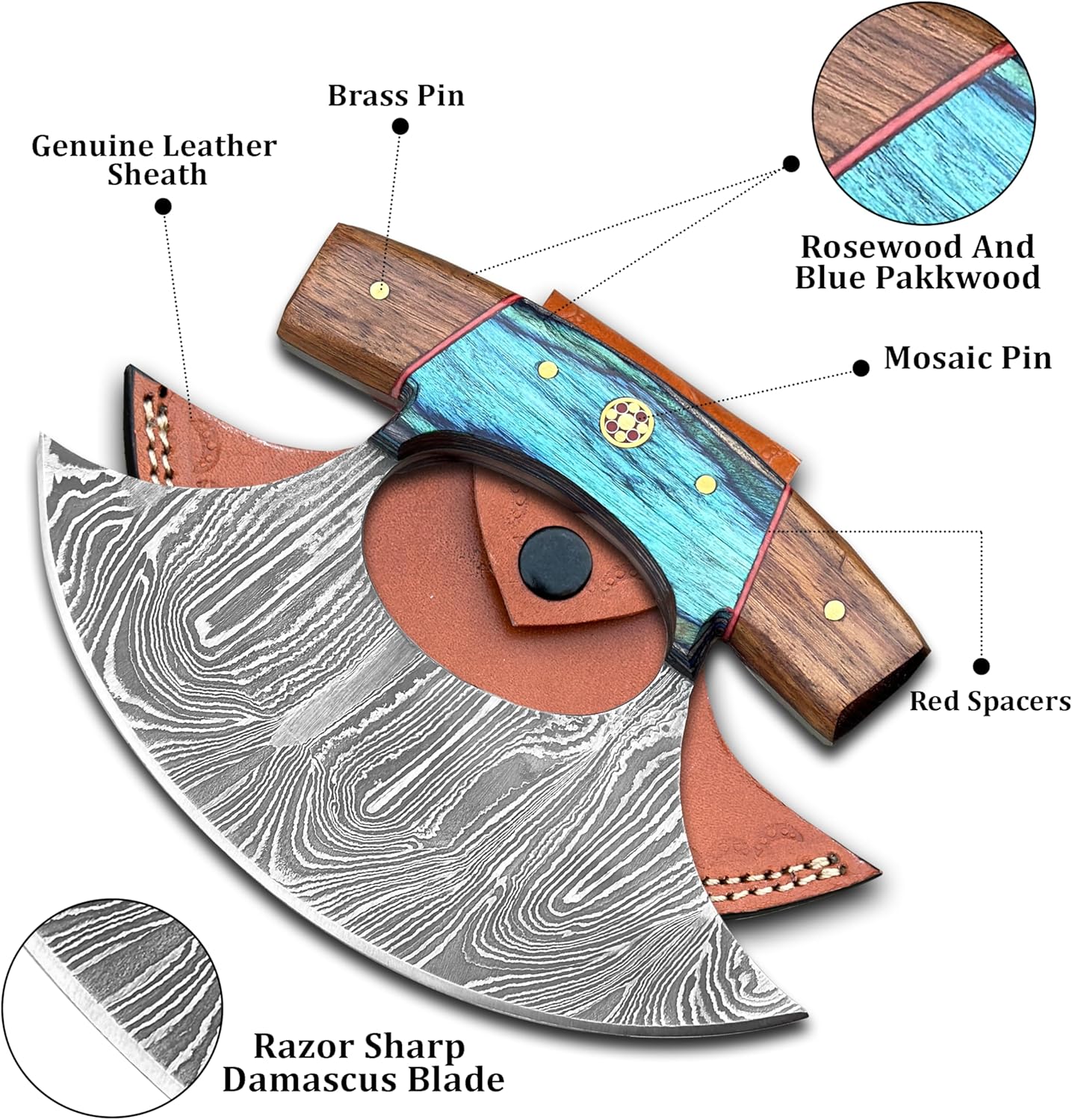 included components: Ulu Knife with Leather Sheath