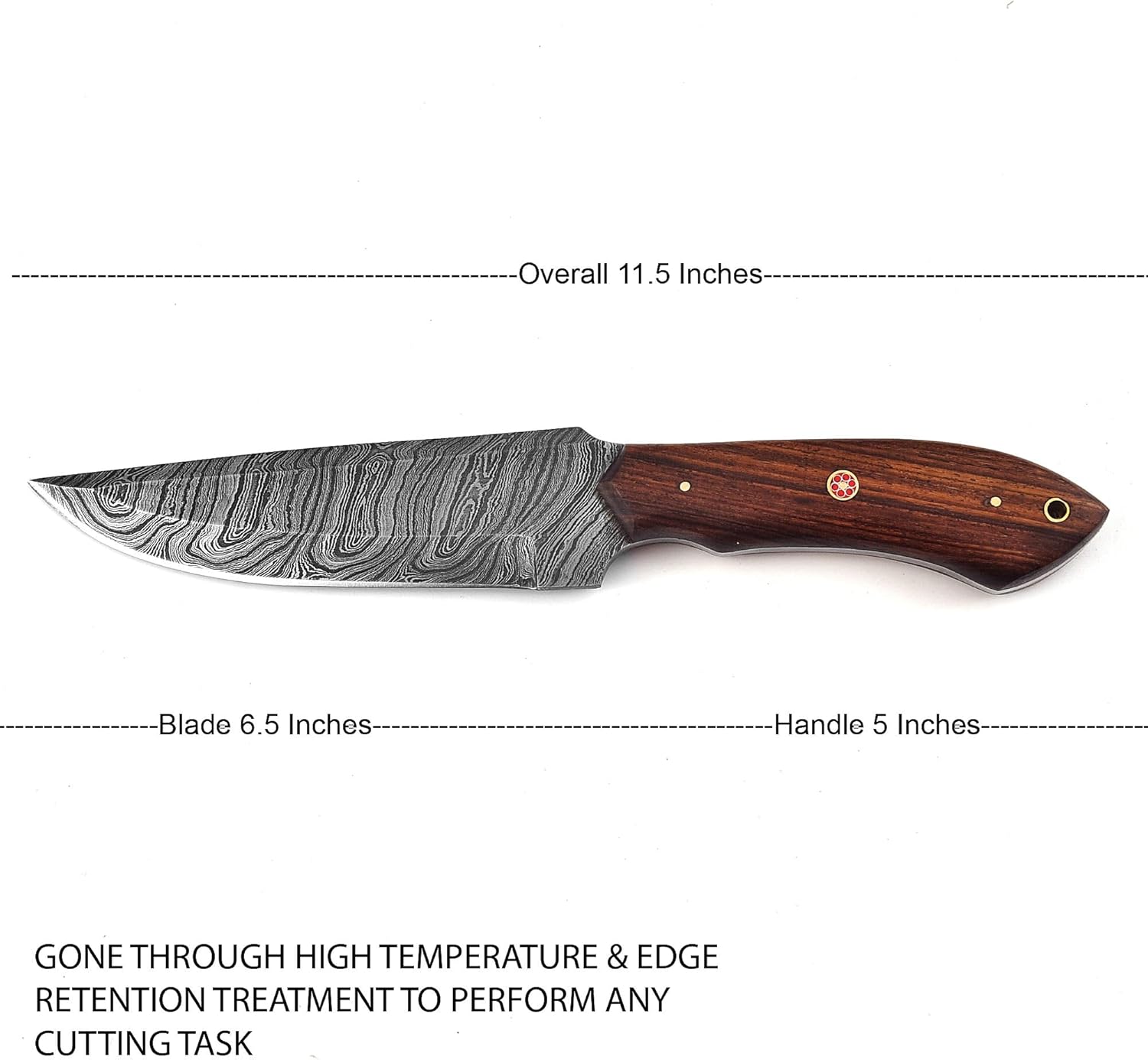 11-inch overall length: 6-inch blade, 5-inch rosewood handle
