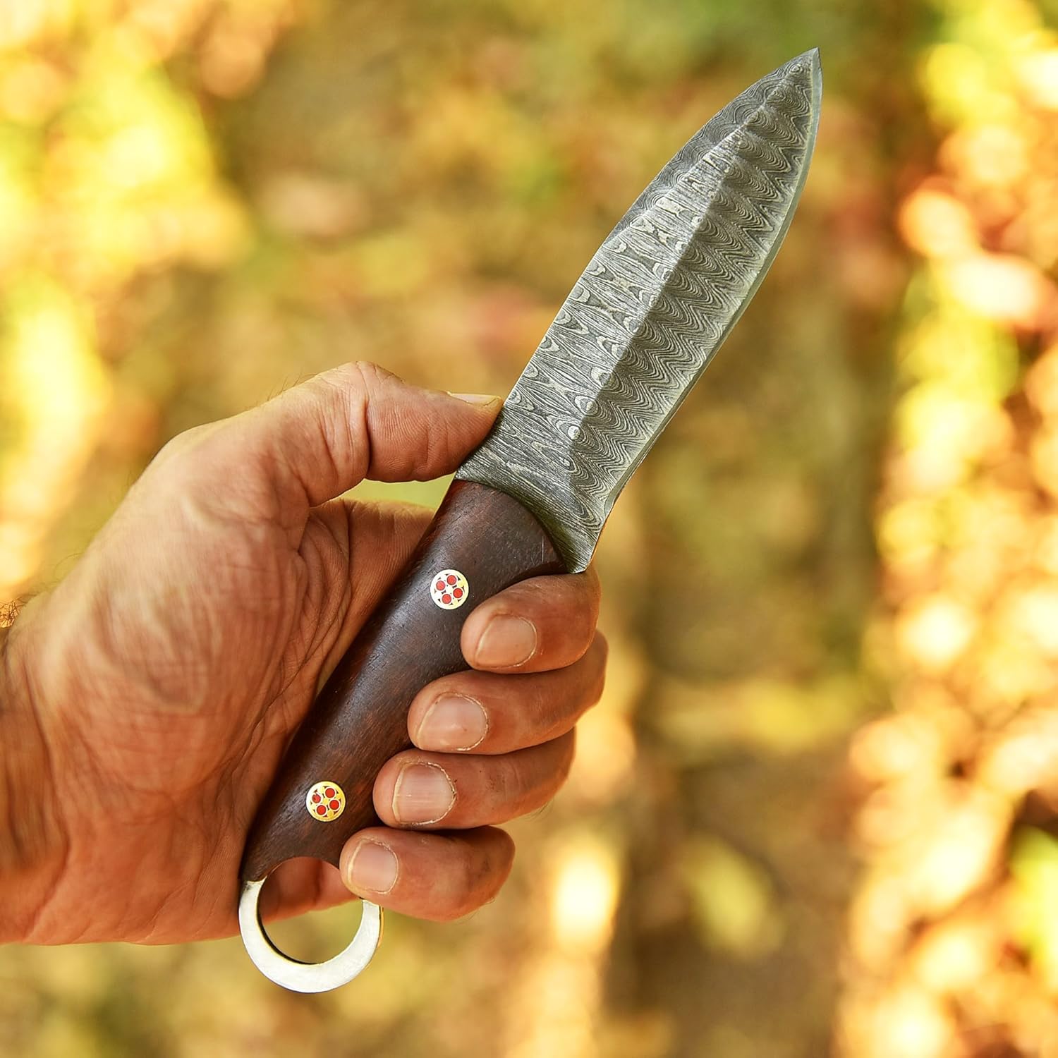Hand-forged Damascus steel for superior sharpness and strength