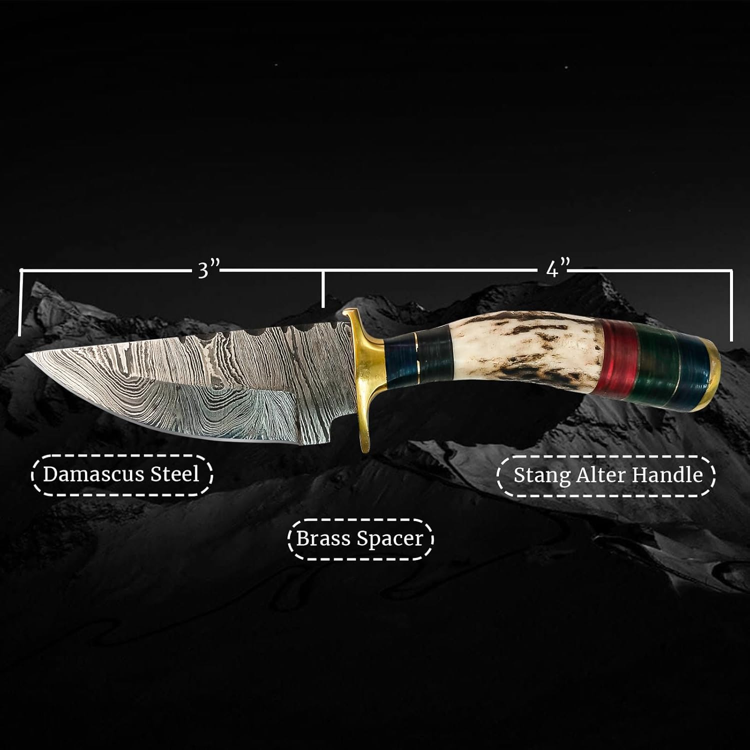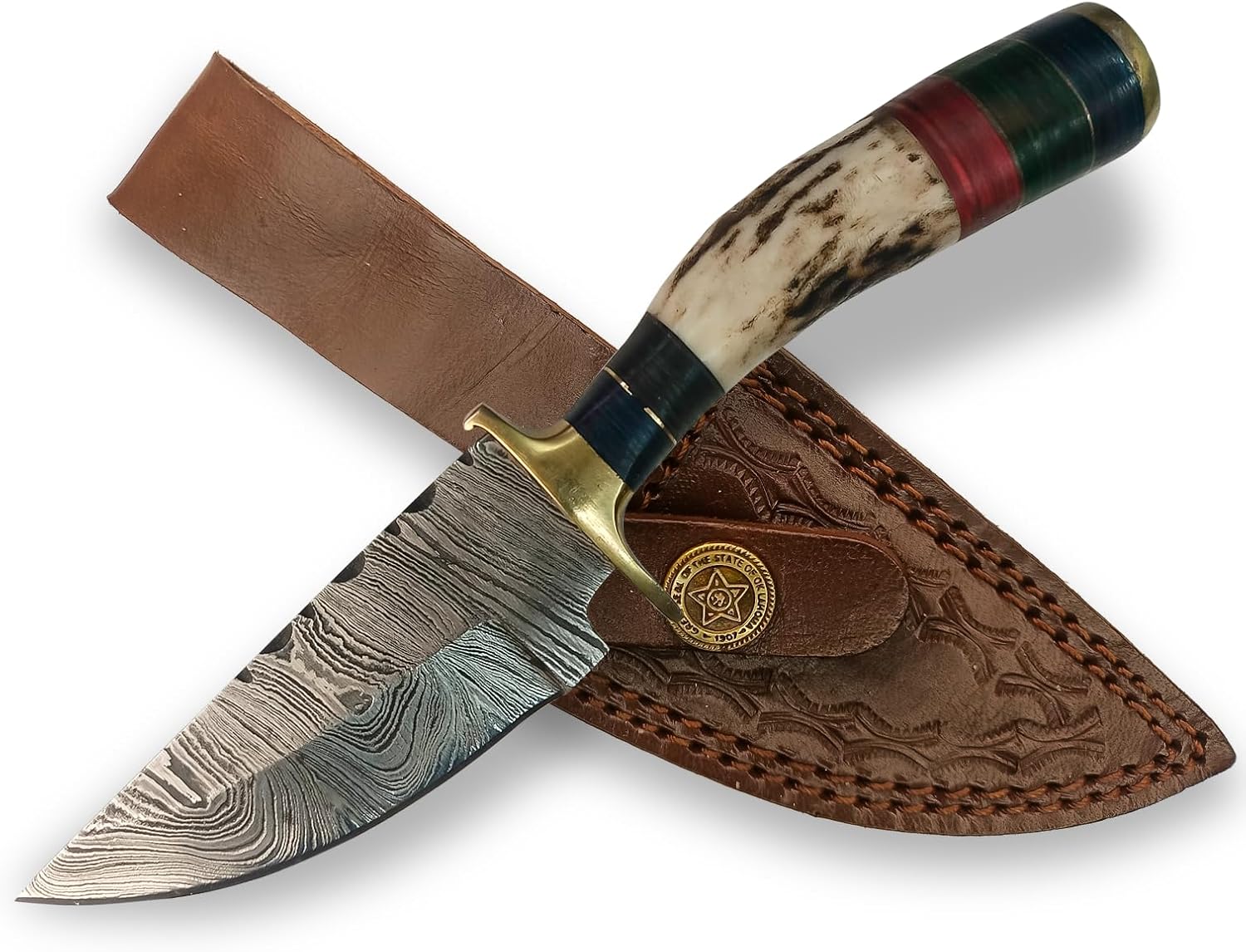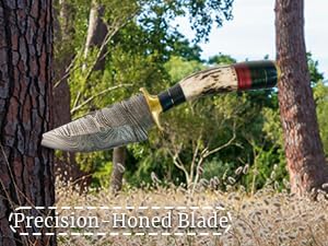 The Handmade Damascus Stag Antler Knife includes a limited warranty covering manufacturing defects under normal use conditions.