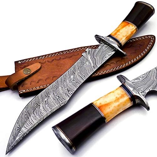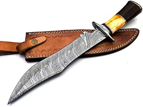 Handmade Damascus Steel Bowie Knife 15” with Sheath | Mega Blades