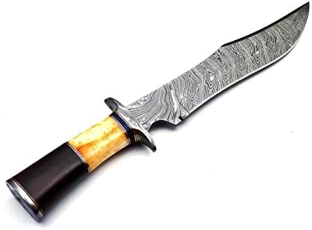 • Durable Damascus Bowie knife with sheath for secure carry