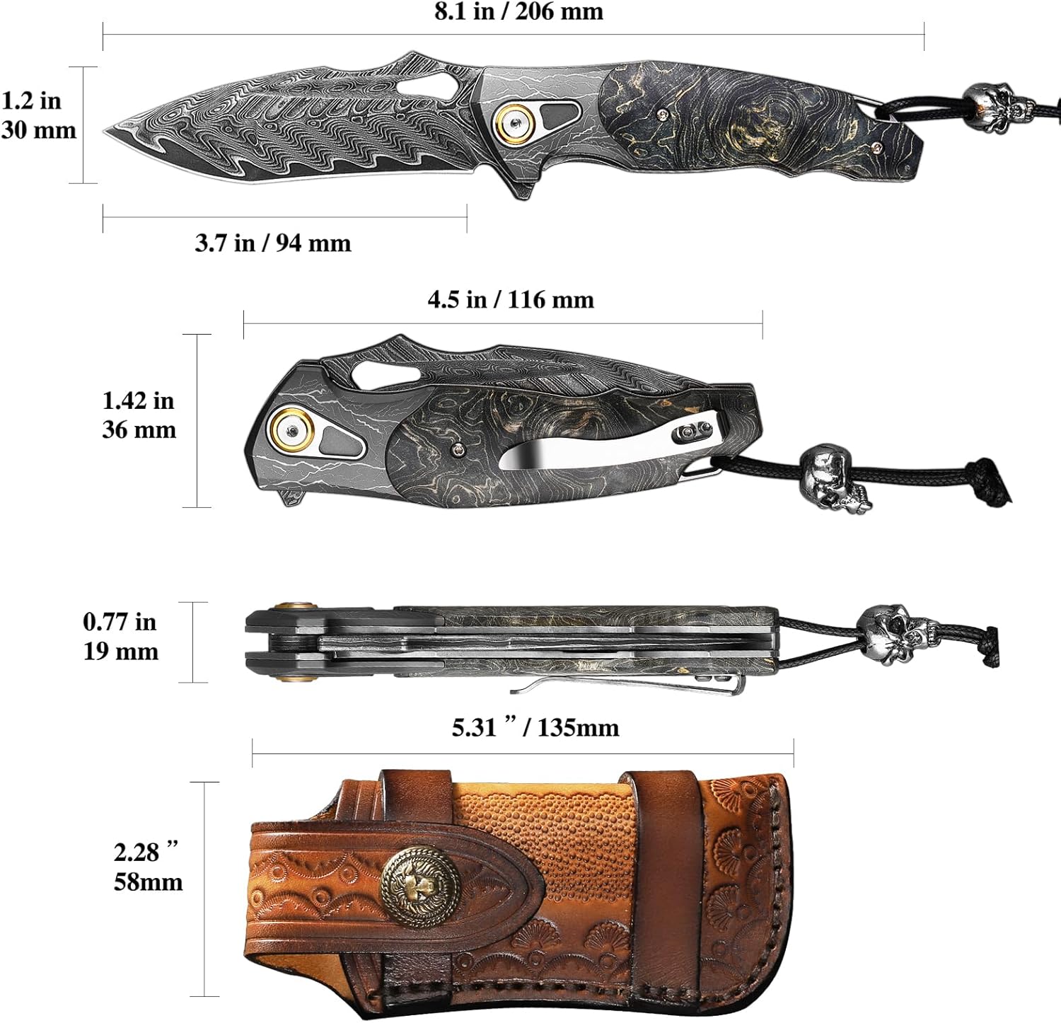 Included Components: Pocket Clip, Cowhide Sheath, Storage Case