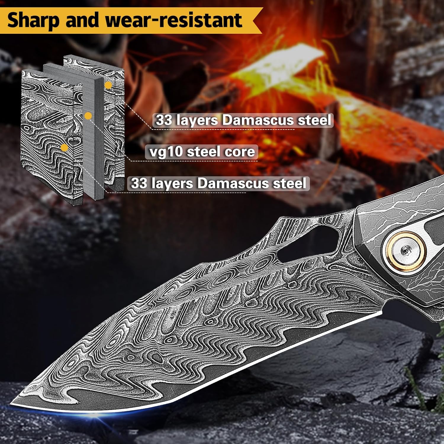 Name: Damascus Steel Pocket Knife