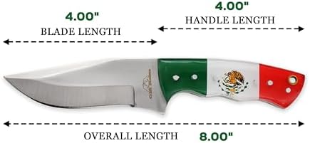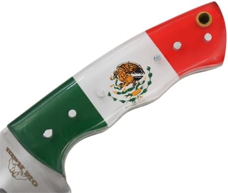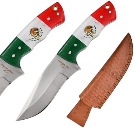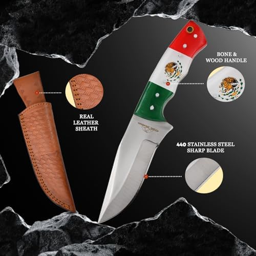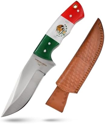 Experience the precision and durability of this Handmade Fixed Blade Hunting Knife. Designed for hunters, campers, and outdoor enthusiasts, it features a sharp 440 stainless steel blade and a sturdy Mexico flag acrylic handle. Complete with a genuine leather sheath, this knife is perfect for EDC, hunting, and skinning tasks.