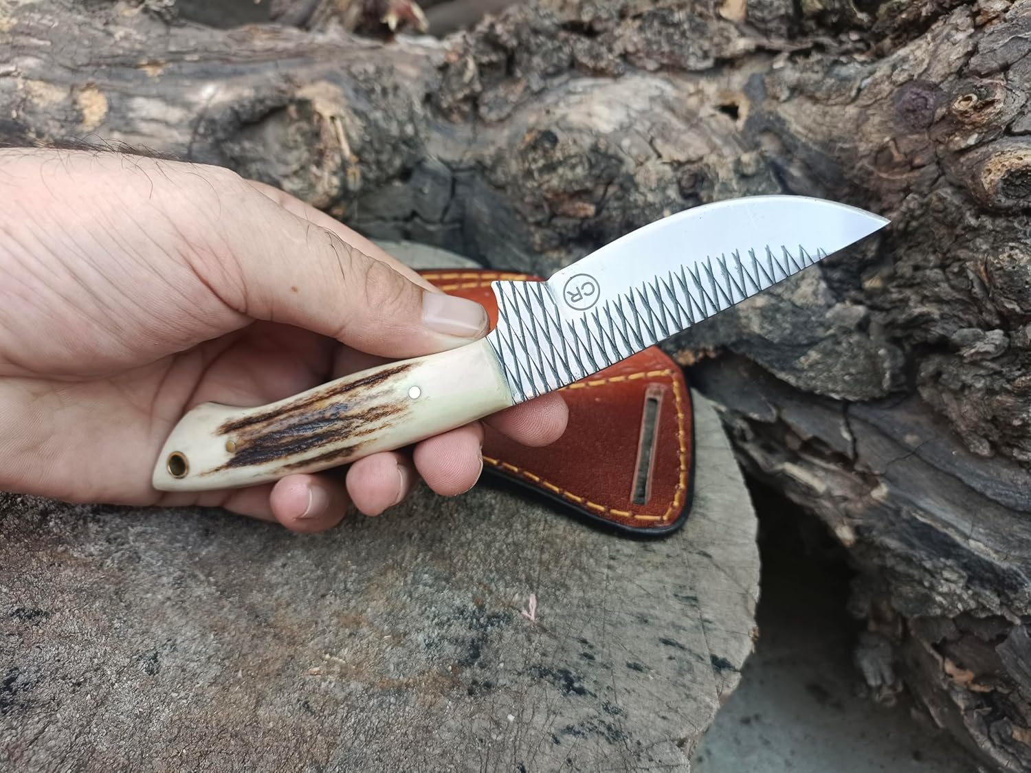 Natural stag handle for strong grip