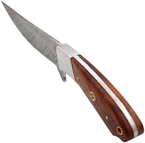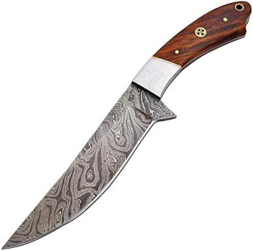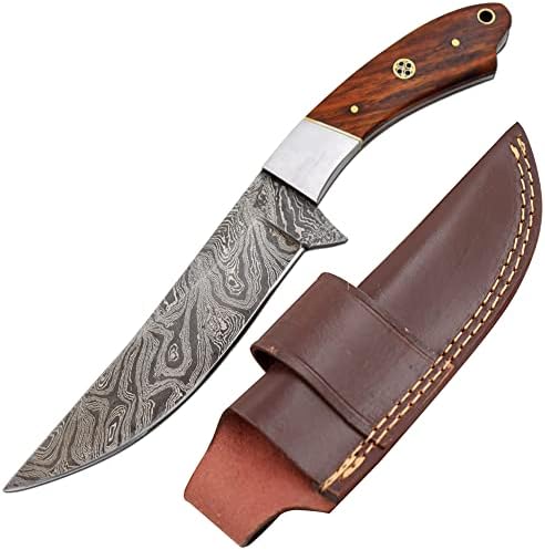 This Handmade Full Tang Damascus Steel Hunting Camping Knife is designed for outdoor enthusiasts who demand strength, reliability, and authentic craftsmanship. Featuring a real Damascus steel fixed blade and full tang construction, it delivers dependable cutting performance for hunting, fishing, camping, and bushcraft tasks.