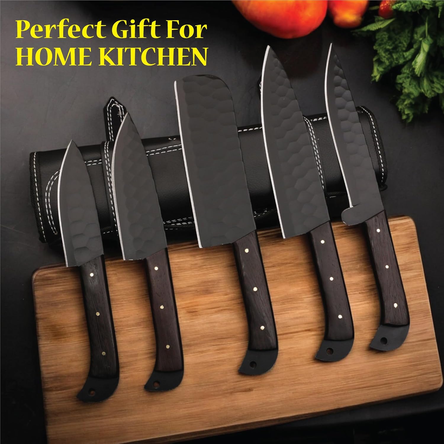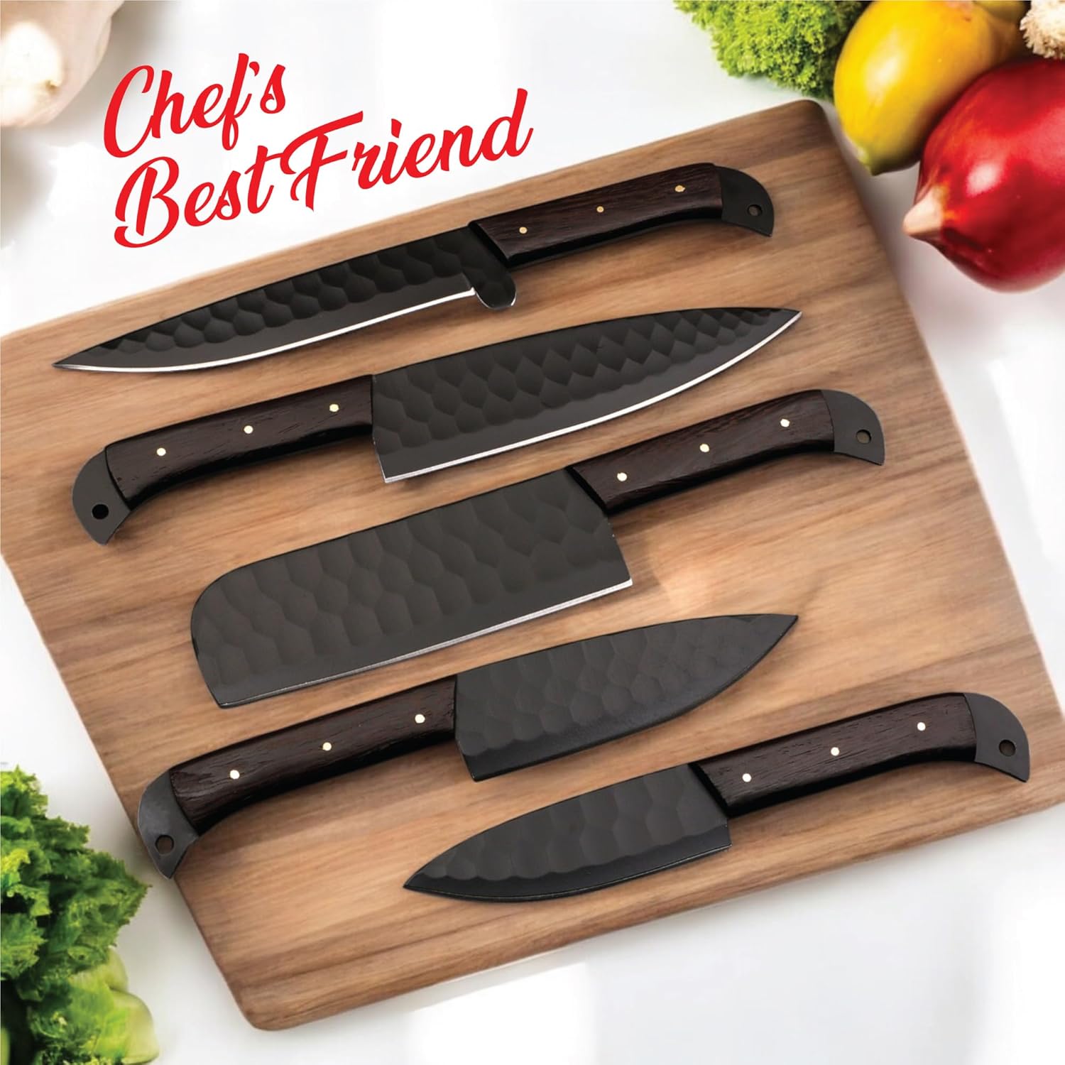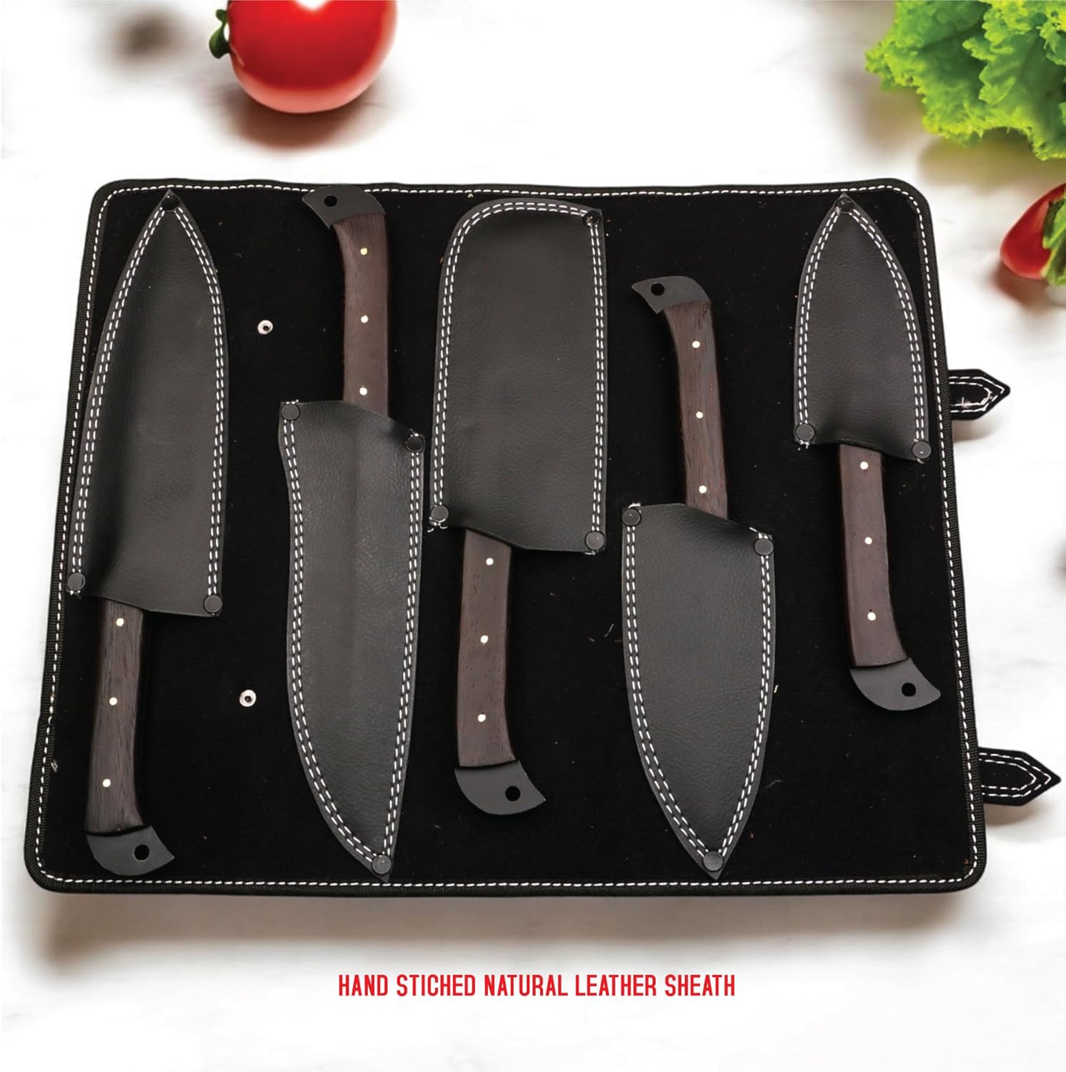 Handmade Kitchen Knife Set – 5 PCS Wengiwood Handle Knives mega blades