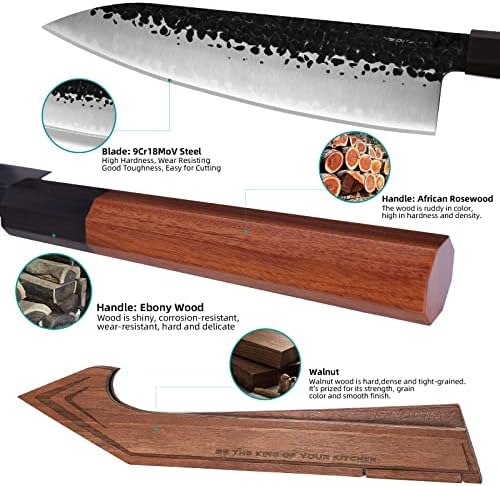 The Chefs Knives Set from the Dynasty Series combines precision craftsmanship with premium materials to deliver an exceptional kitchen experience. Featuring high-carbon 9Cr18MoV steel blades and durable rosewood handles, this 8-piece set is ideal for slicing, dicing, and chopping meats, fruits, vegetables, and more. Walnut knife holders and protective edge guards ensure both safe storage and elegant countertop display.