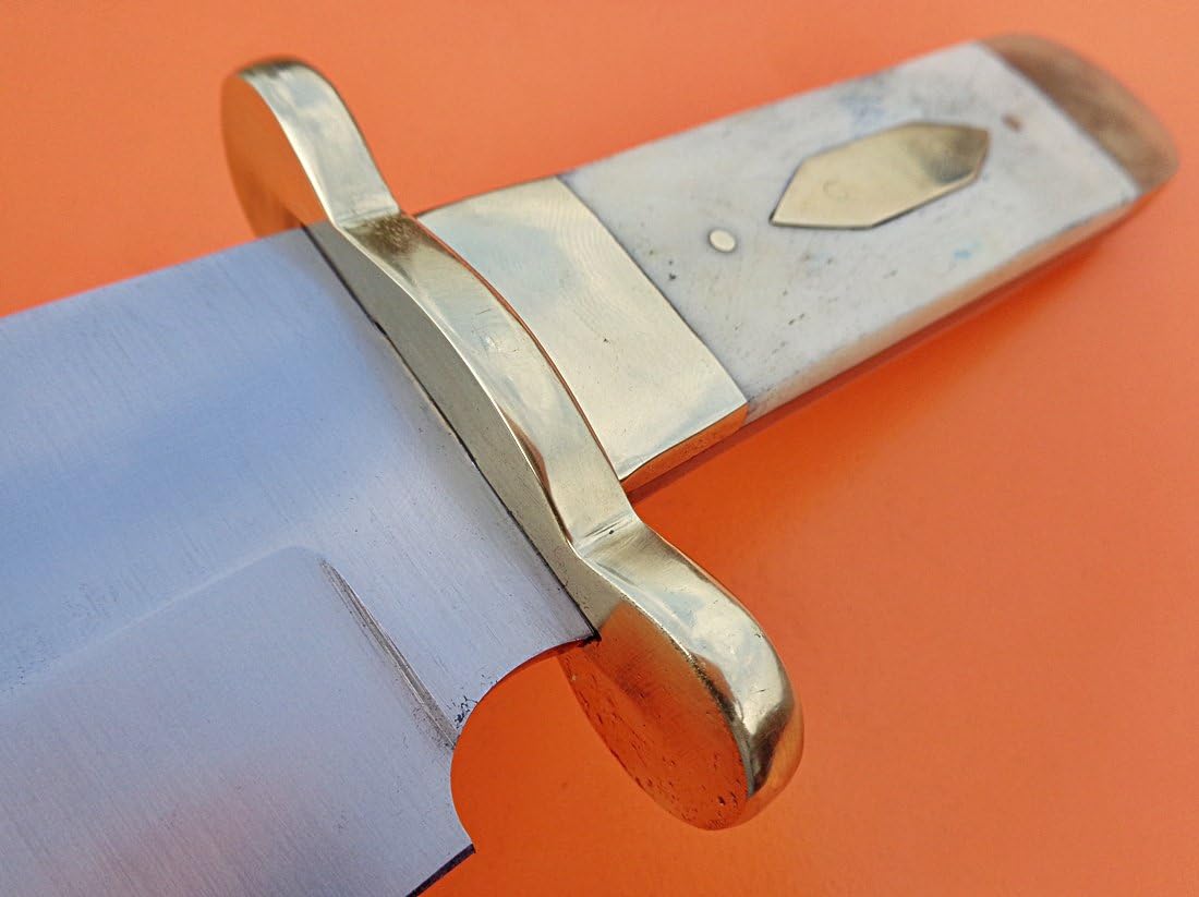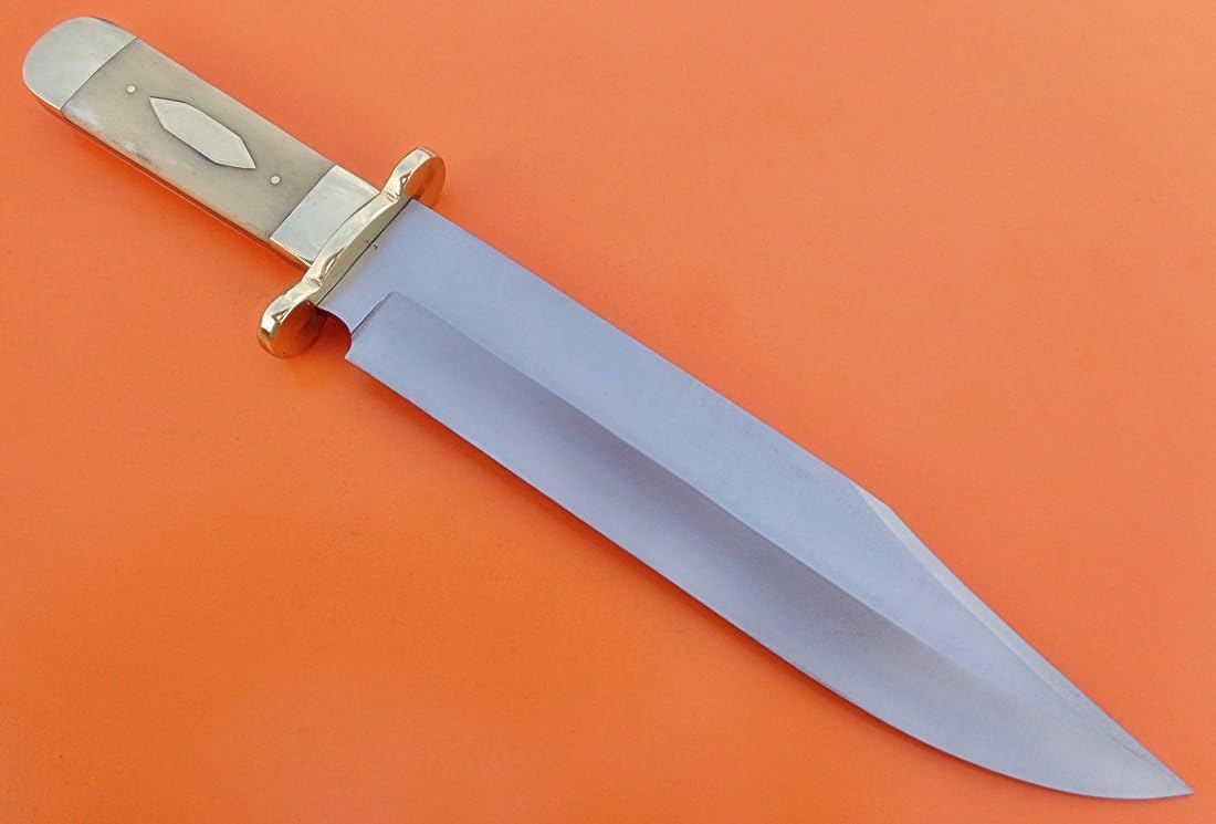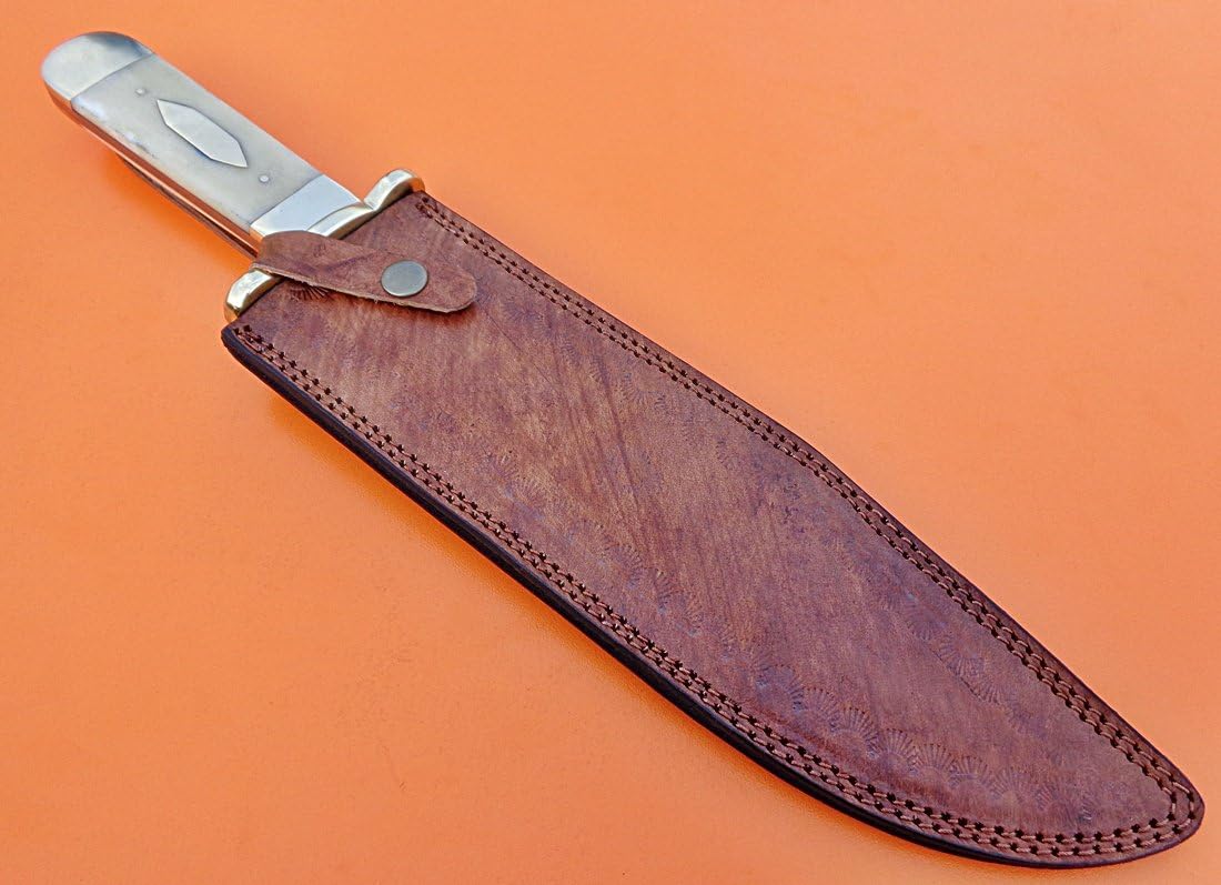 The Hunting Bowie Knife HK 802 features a full tang D2 steel blade with a smooth ergonomic bone handle. Perfect for hunting, camping, bushcraft, and survival tasks, this durable fixed blade knife comes with a premium leather sheath for safe carrying and long-lasting performance.