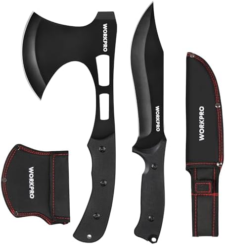 Experience ultimate outdoor preparedness with this hunting knife and hatchet combo. Perfectly designed for camping, bushcraft, and survival scenarios, this set includes a 12.5-inch full tang tactical knife and an 11-inch camping axe. Lightweight yet durable, these tools provide exceptional cutting, chopping, and splitting performance for any outdoor adventure.
