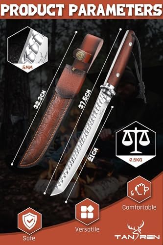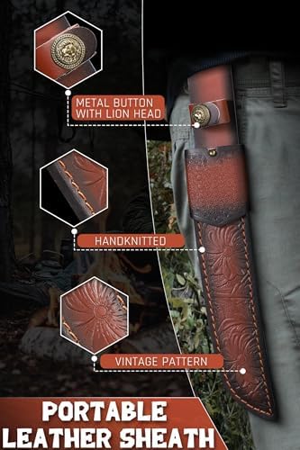 The Hunting Knife with Sheath is engineered for serious outdoor performance and refined craftsmanship. Featuring an 8.3-inch fixed blade forged from premium VG10 steel with a hardness of 61+ HRC, this knife delivers razor-sharp precision and outstanding edge retention. Designed for hunters, campers, and survivalists, it combines rugged durability with a polished rosewood handle and a premium leather sheath for dependable field carry.