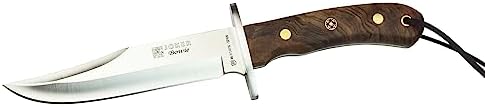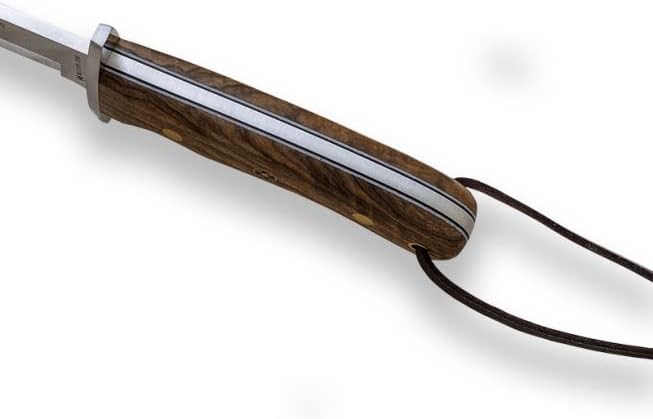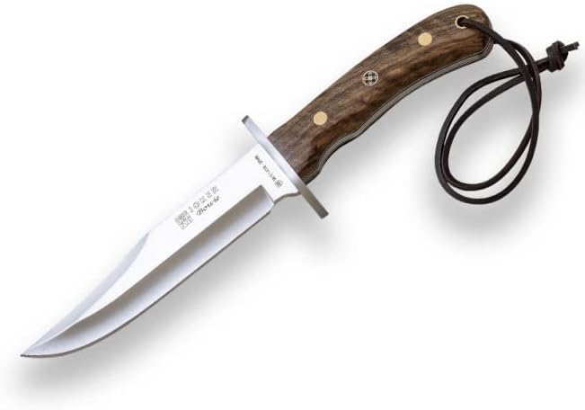 This hunting knife is a refined blend of traditional Spanish craftsmanship and modern outdoor performance. Expertly crafted in Albacete, Spain, it features a full tang Mova stainless steel blade and an elegant walnut wood handle, making it a reliable and stylish companion for hunting and outdoor use.