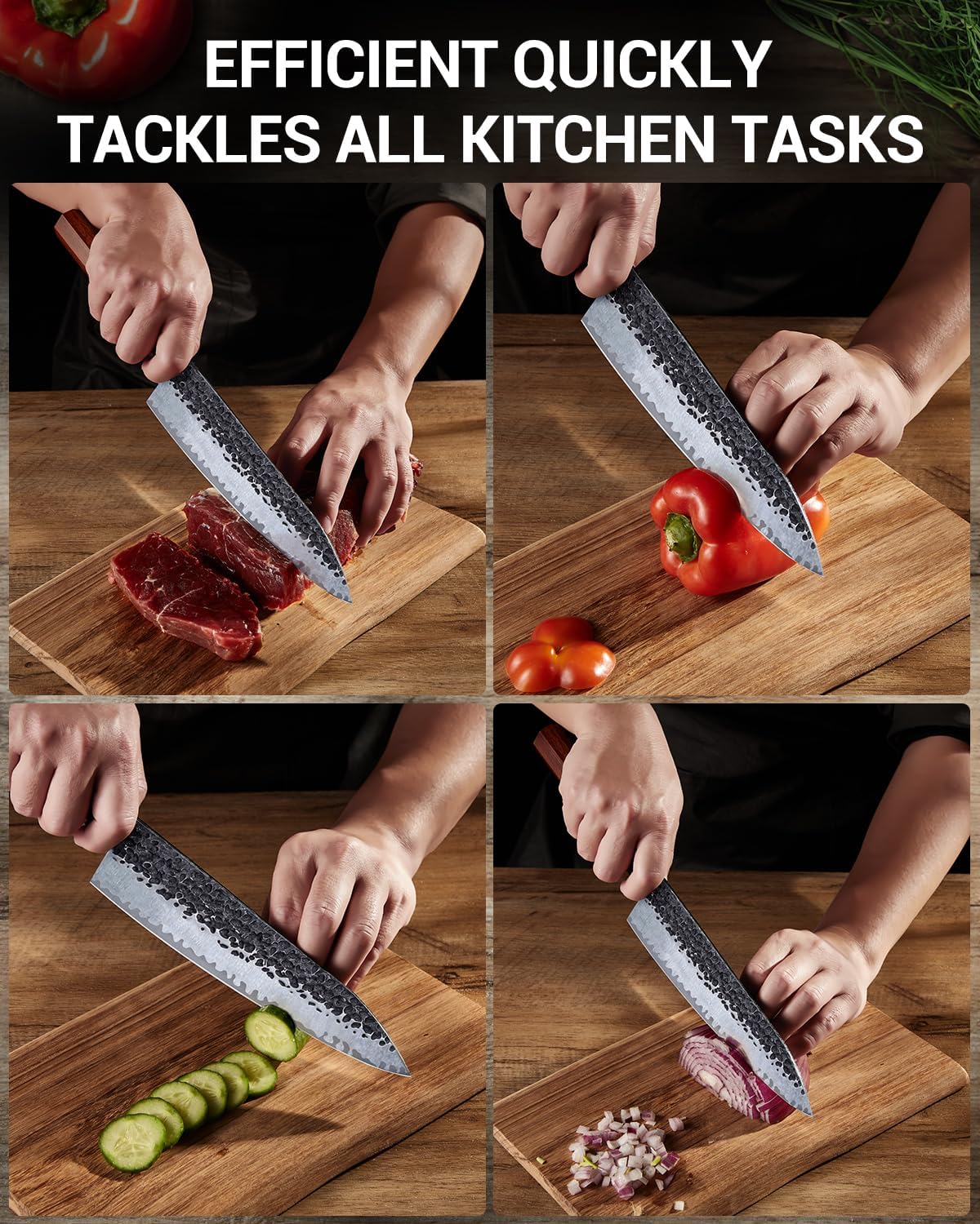 Hand-forged 5-layer 9CR18MOV steel ensures premium durability