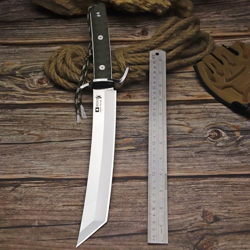 The Japanese Fixed Blade Hunting Knife combines the elegance of a traditional katana with the strength and versatility of a Bowie knife. This 17.4-inch full tang knife is engineered for precision, power, and reliability in any outdoor, survival, or bushcraft scenario, making it an essential tool for hunters and adventurers.