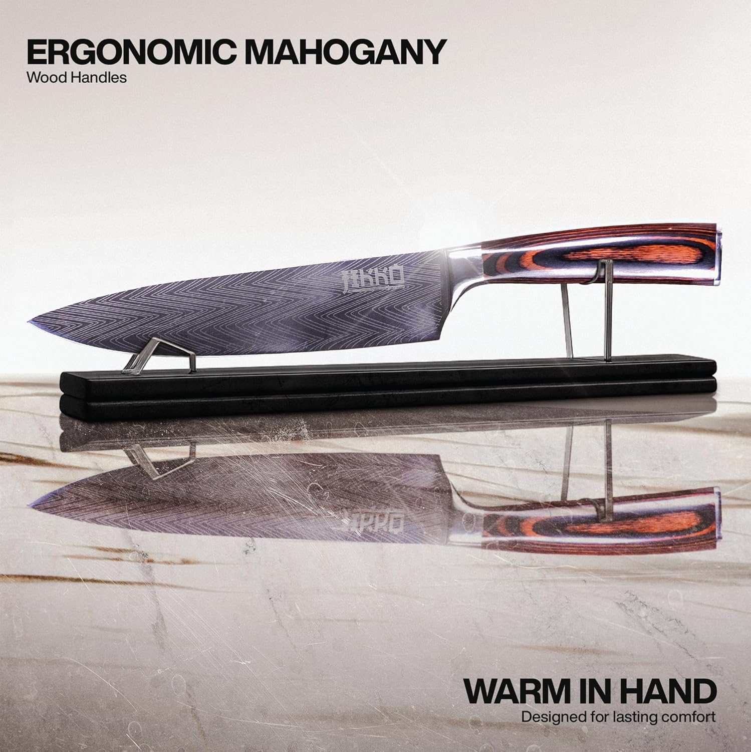 The Jikko Japanese Kitchen Knife Set from the DiamondRazor Series is designed for professional chefs and home cooks who demand precision, durability, and comfort. Made with reinforced carbon steel and ergonomic mahogany wood handles, this set delivers ultra-sharp performance for everyday cooking tasks.