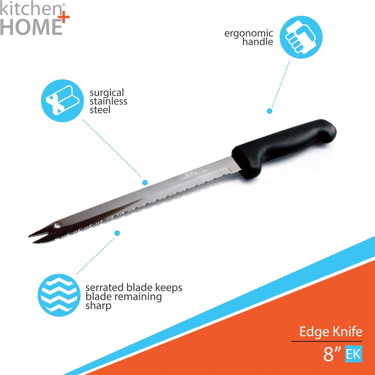 Razor-sharp blade cuts effortlessly through bread, meat, vegetables, and fruits