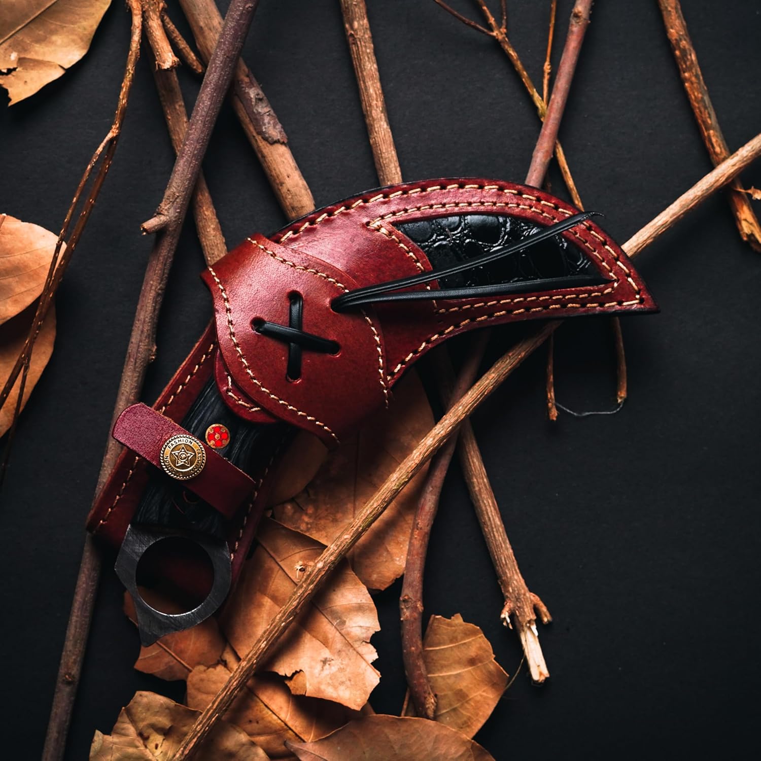 Cowhide leather sheath included for safe and convenient horizontal carry