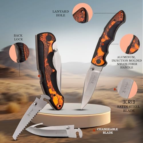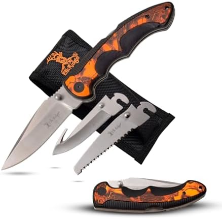 This hunting folding knife provides compact versatility for field, camping, or survival tasks. Its multi-blade design allows for skinning, sawing, and general cutting duties, while the lightweight handle ensures a secure grip and comfortable control during extended use.