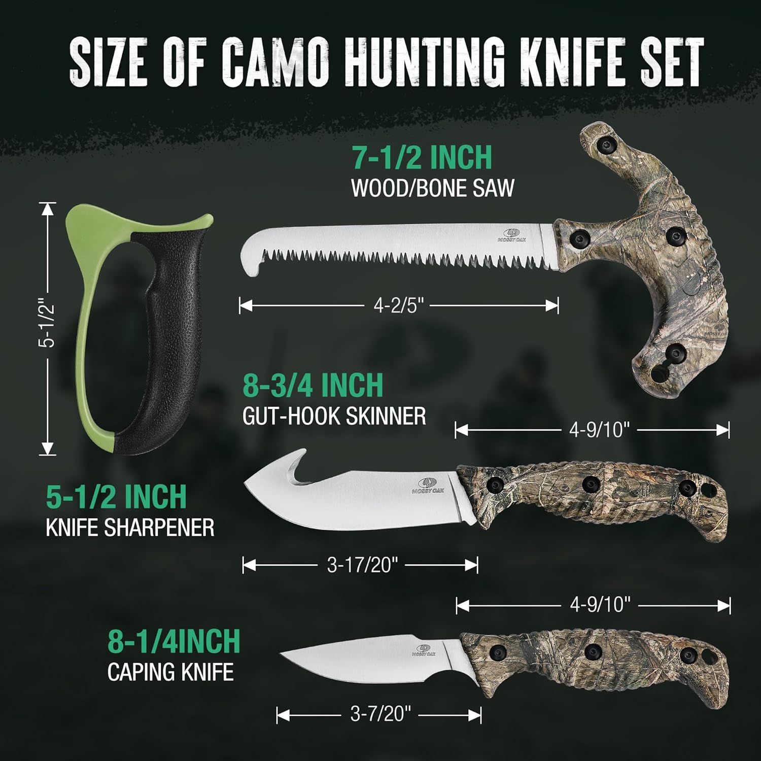Mossy Oak Field Dressing Kit 4‑Piece Hunting Knife Set mega blades