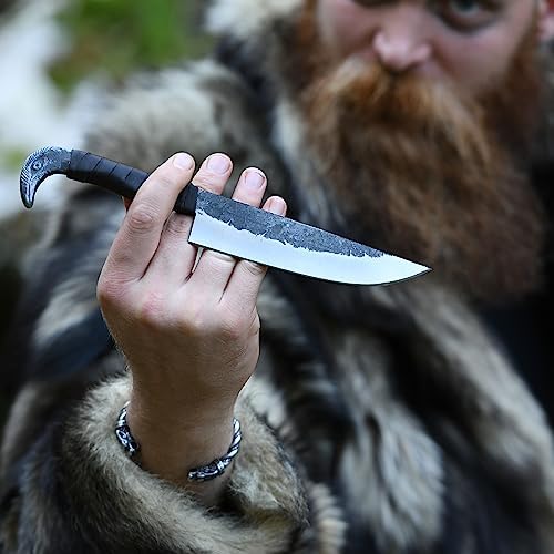 This Raven head Norse knife stands out as both a practical field blade and a statement piece for enthusiasts of Viking history and craftsmanship.