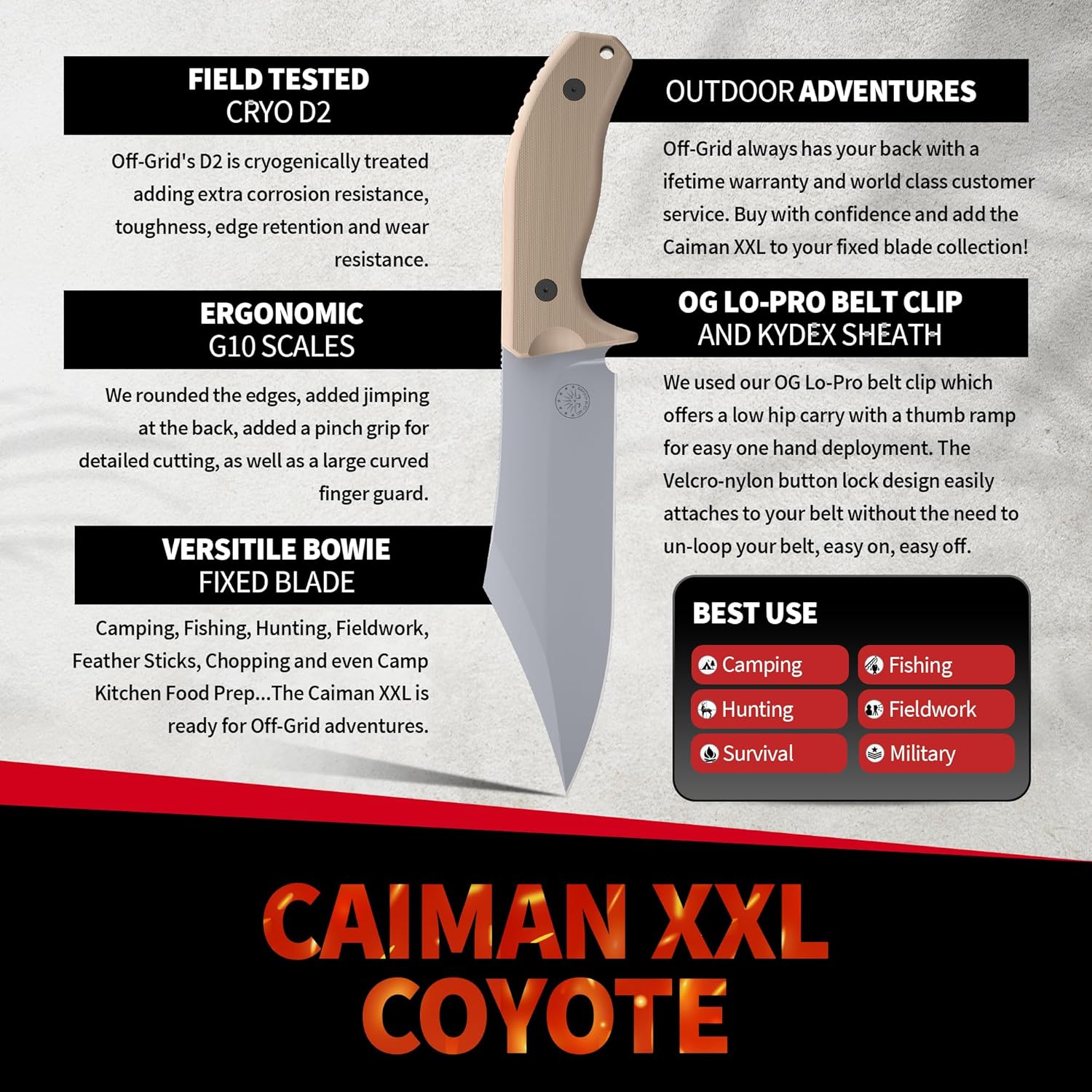 name: Off-Grid Knives Caiman XXL Fixed Blade Bowie Knife