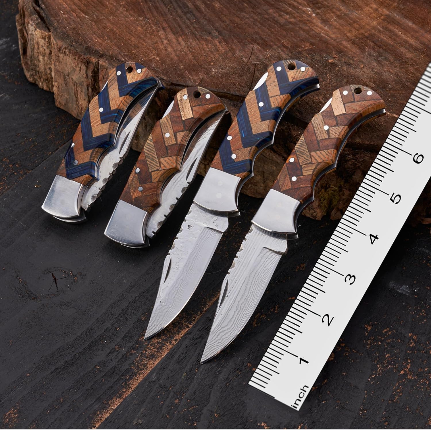 | Handle Material | Blue & Black Pakka Wood |