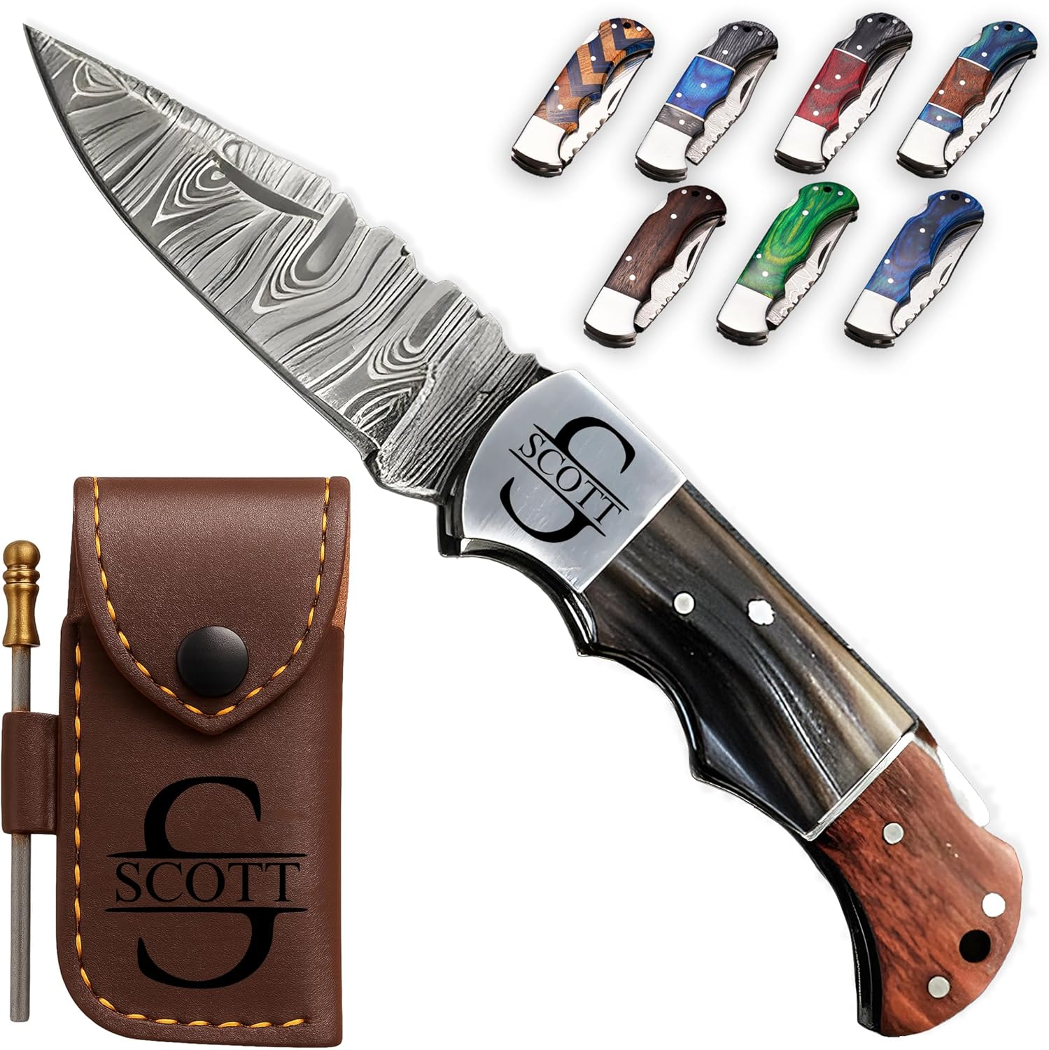 🔪 Personalized Handmade Damascus Pocket Knife