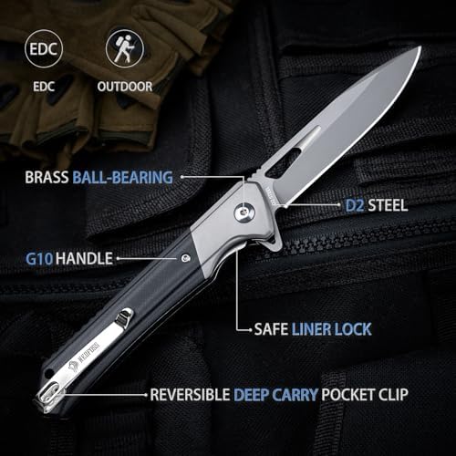 The Pocket Knife 3.3″ D2 Blade by NedFoss is a premium EDC folding knife crafted for precision, reliability, and everyday versatility. Featuring a hardened D2 steel blade, lightweight G10 handle, and flipper opening with a secure liner lock, this slim pocket knife is ideal for men and women who demand sharpness, performance, and portability in one compact design.