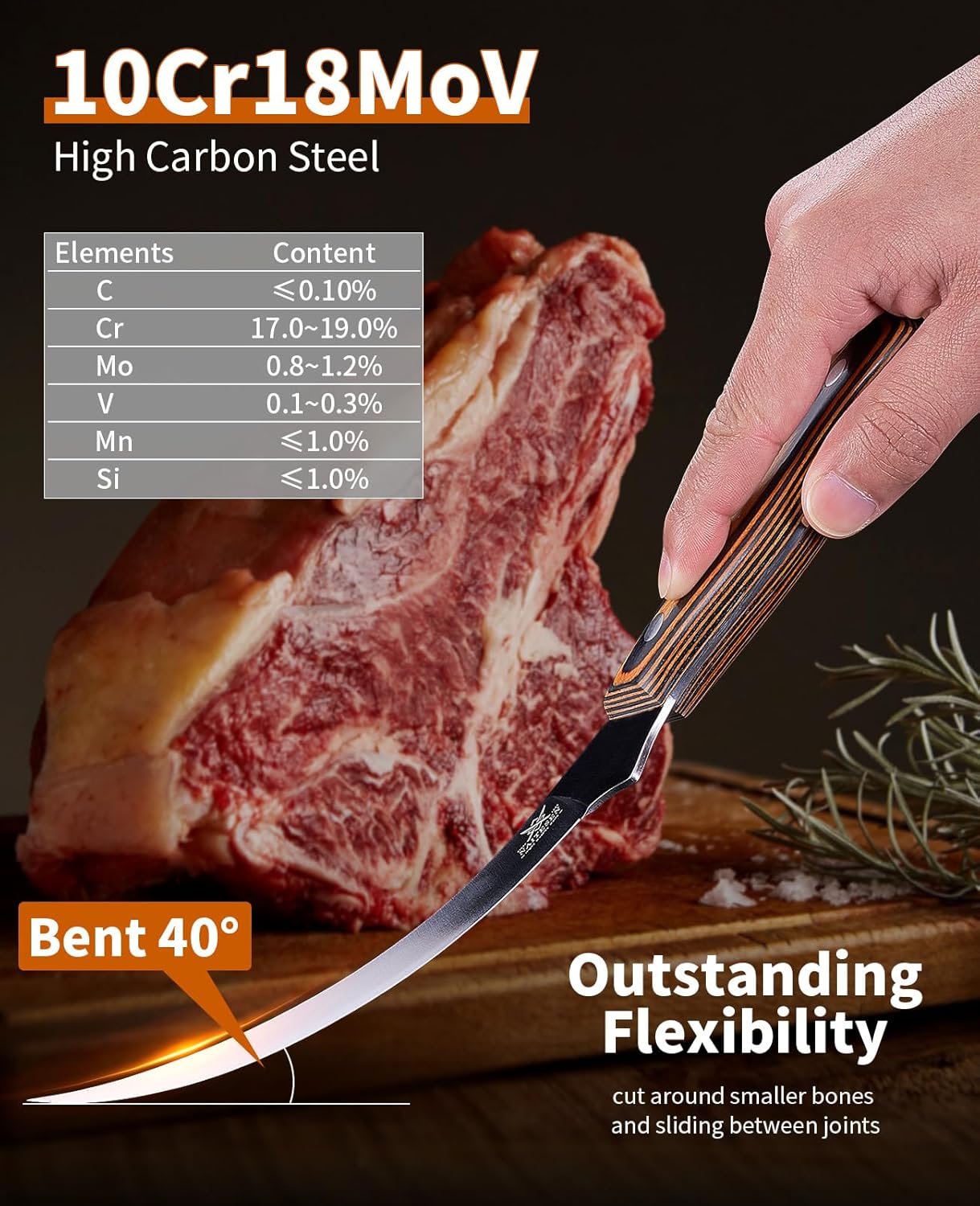 2-piece Professional Boning Knife Set: 7.5-inch boning knife and 7.5-inch fillet knife